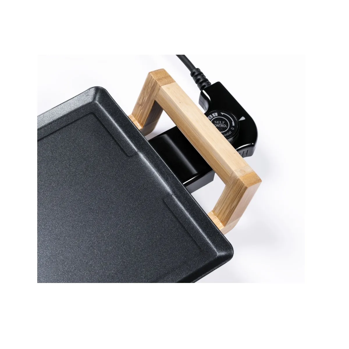 Plancha électrique - Plaque antiadhésive - 2000W - 100 x 22 cm - Poignées bambou