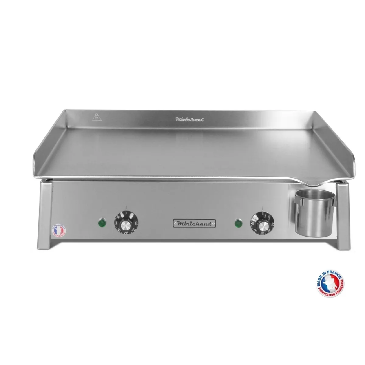 Appareil conçu pour 12 personnes maximum. Matériel tout inox. Dimension : L65 X P43 X H25 cm. 2 zones de chauffe indépendantes. 2 Thermostats indépendants de 50° à 300° . Bol de récupération des jus amovible. Les 3 bords de la plancha ont une hauteur de 5,5 cm chacun. Surface de cuisson 64 x 40 cm. Plaque de cuisson en inox alimentaire épaisseur 5mm. Puissance : 3000 W. Poids : 25 kg. Plancha avec 4 pieds dont 2 réglables à l'arrière. Le cordon d'alimentation mesure 2 mètres. Norme IPX4. Branchement sur simple prise électrique 230V/16A. Matériel conçu et fabriqué en FRANCE. Plancha à usage domestique uniquement