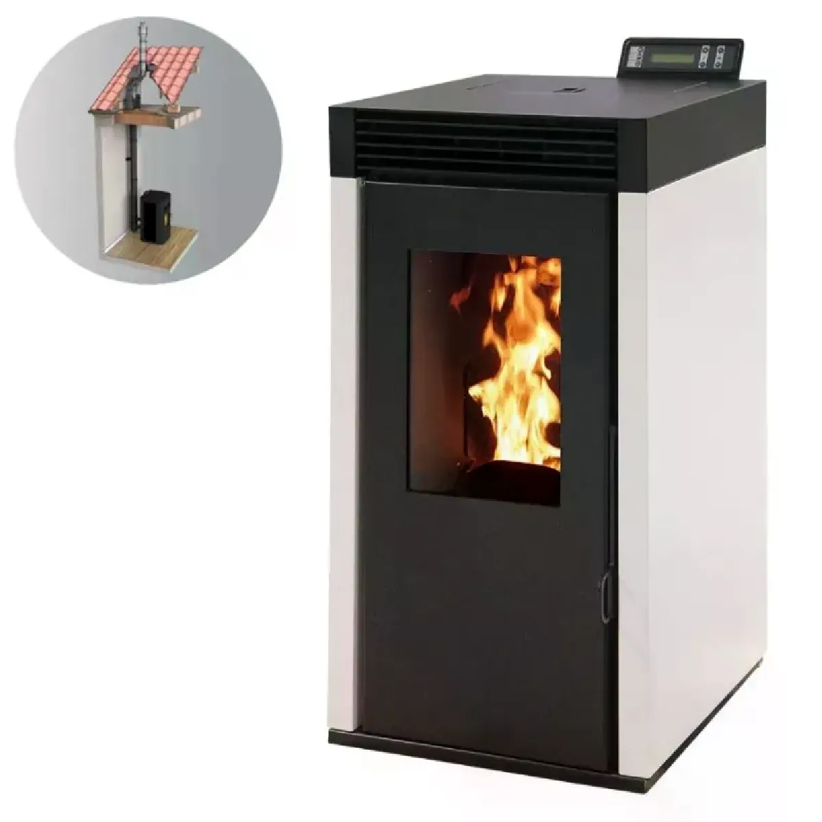 - Facilité et rapidité de montage et de connexion du poêle à granulé jusqu'au plafond