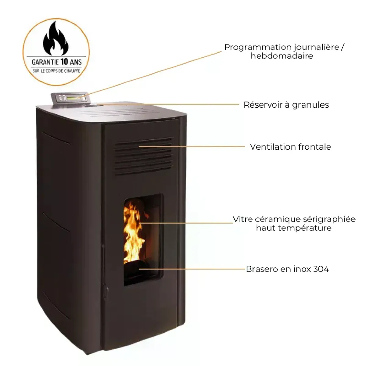 - Garantie 10 ans sur le corps de chauffe