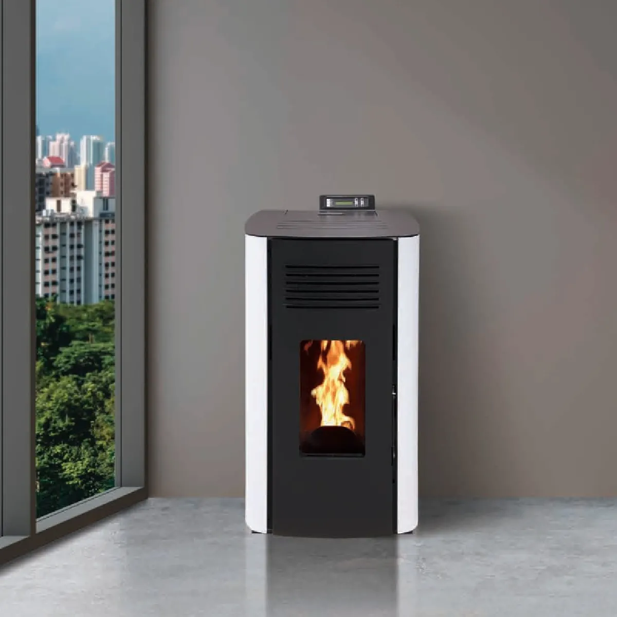 Poêle à granulés hydraulique étanche - Rendement 97,40% - Raccordement 3 radiateurs