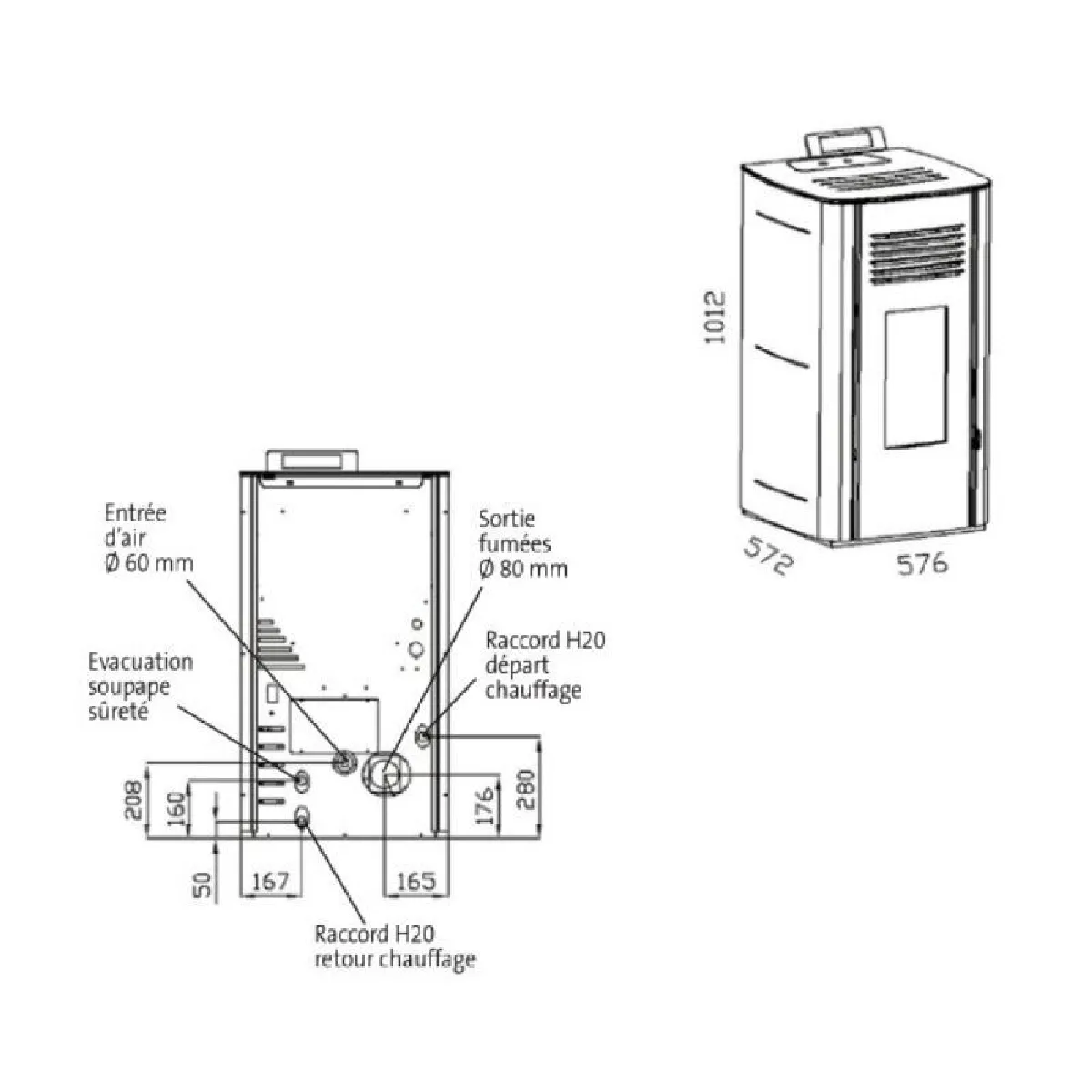 - Un Ventilateur est néanmoins disponible en option (chauffe max. 230 m3/h) (nous contacter)