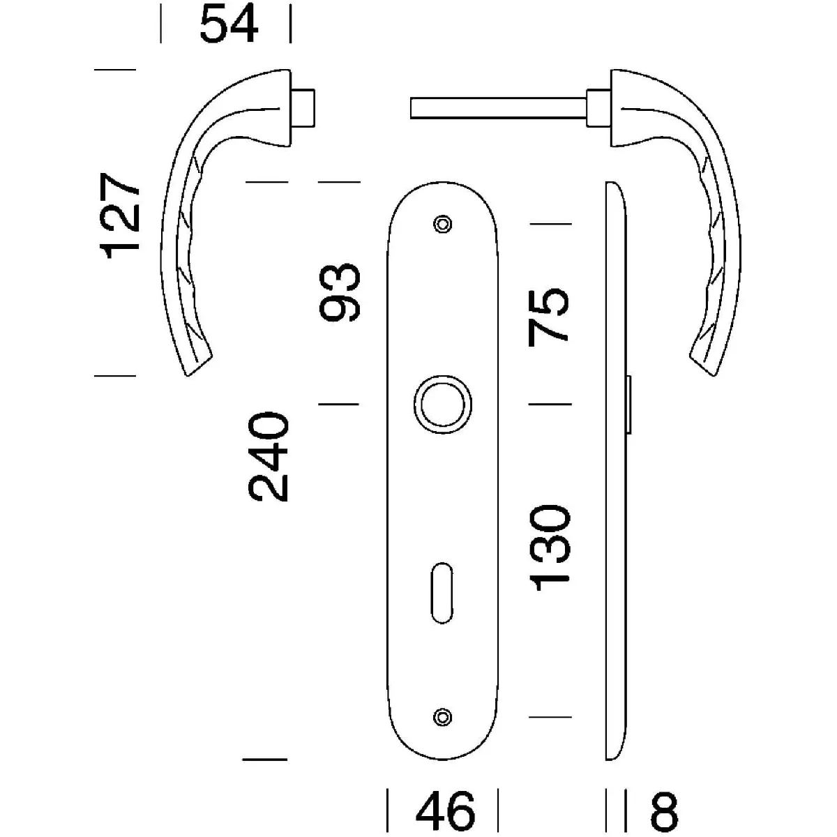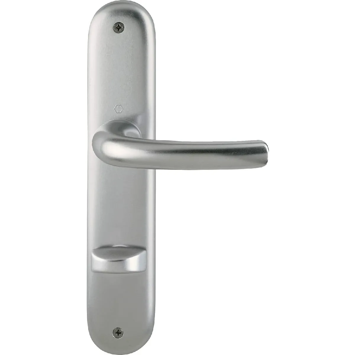 - Type : poignée levier sur plaque longue, usage intérieur WC avec condamnation