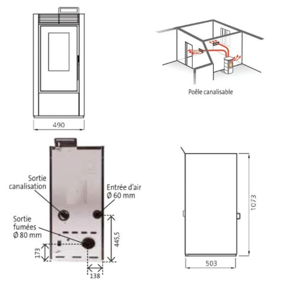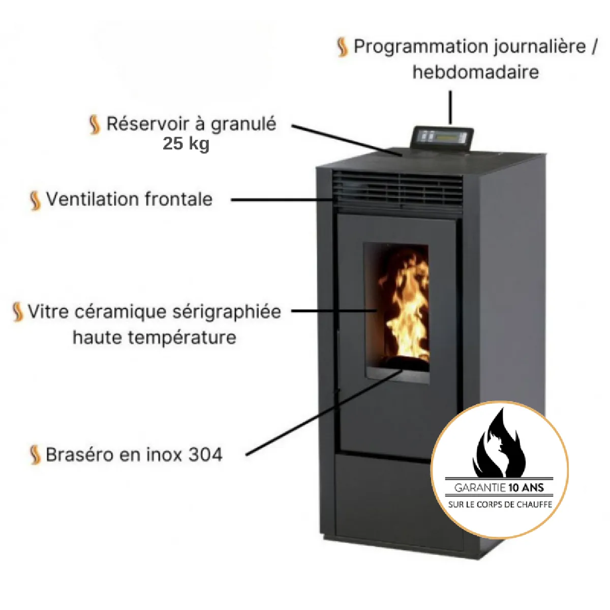 Poêle à granulés étanche - 14 kW - Réservoir 25 kg - Autonomie 35h - Option Wi-Fi