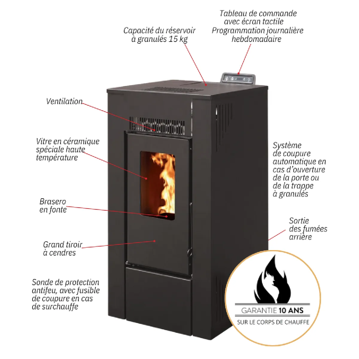 - Garantie 10 ans sur le corps de chauffe