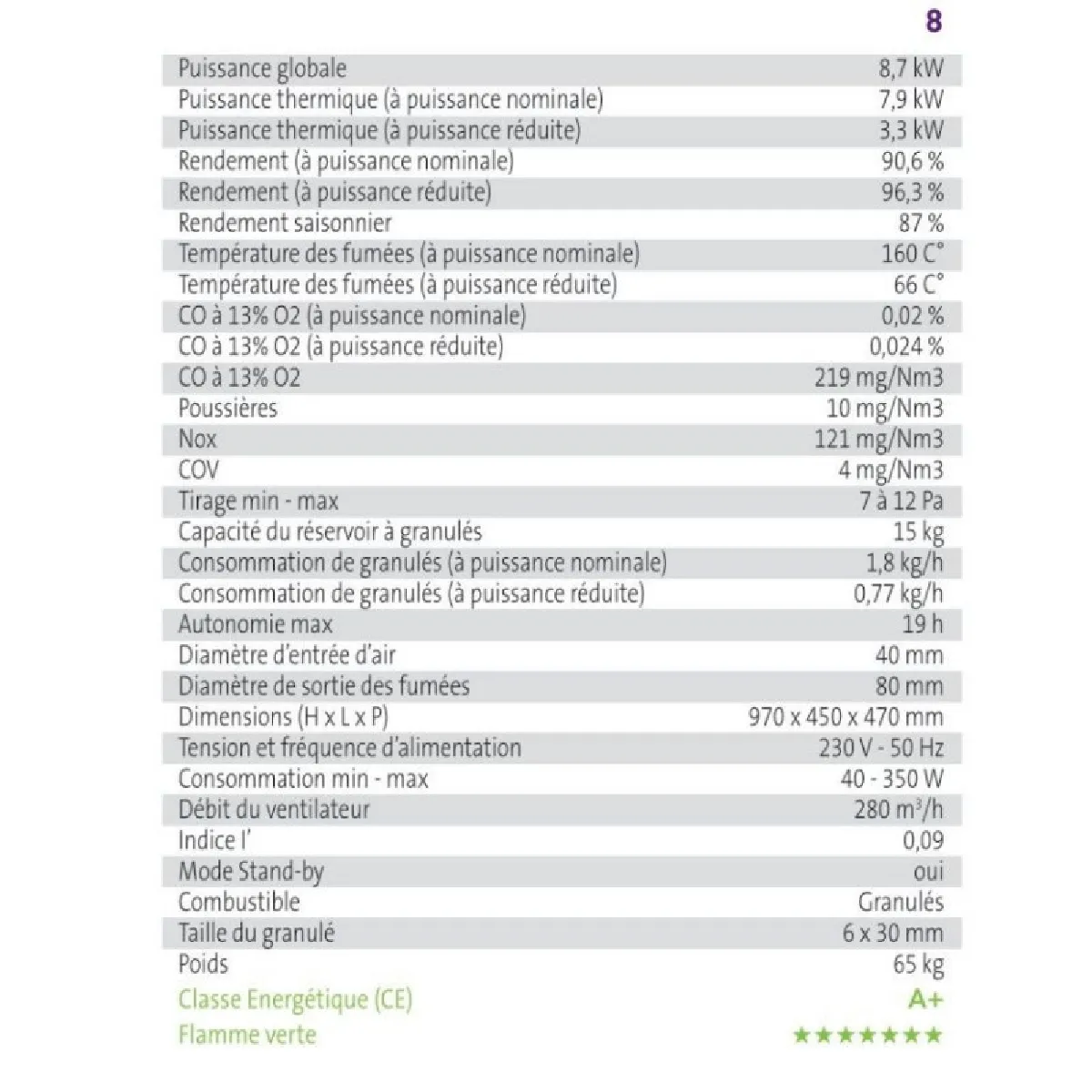- Diamètre fumée : 80 mm