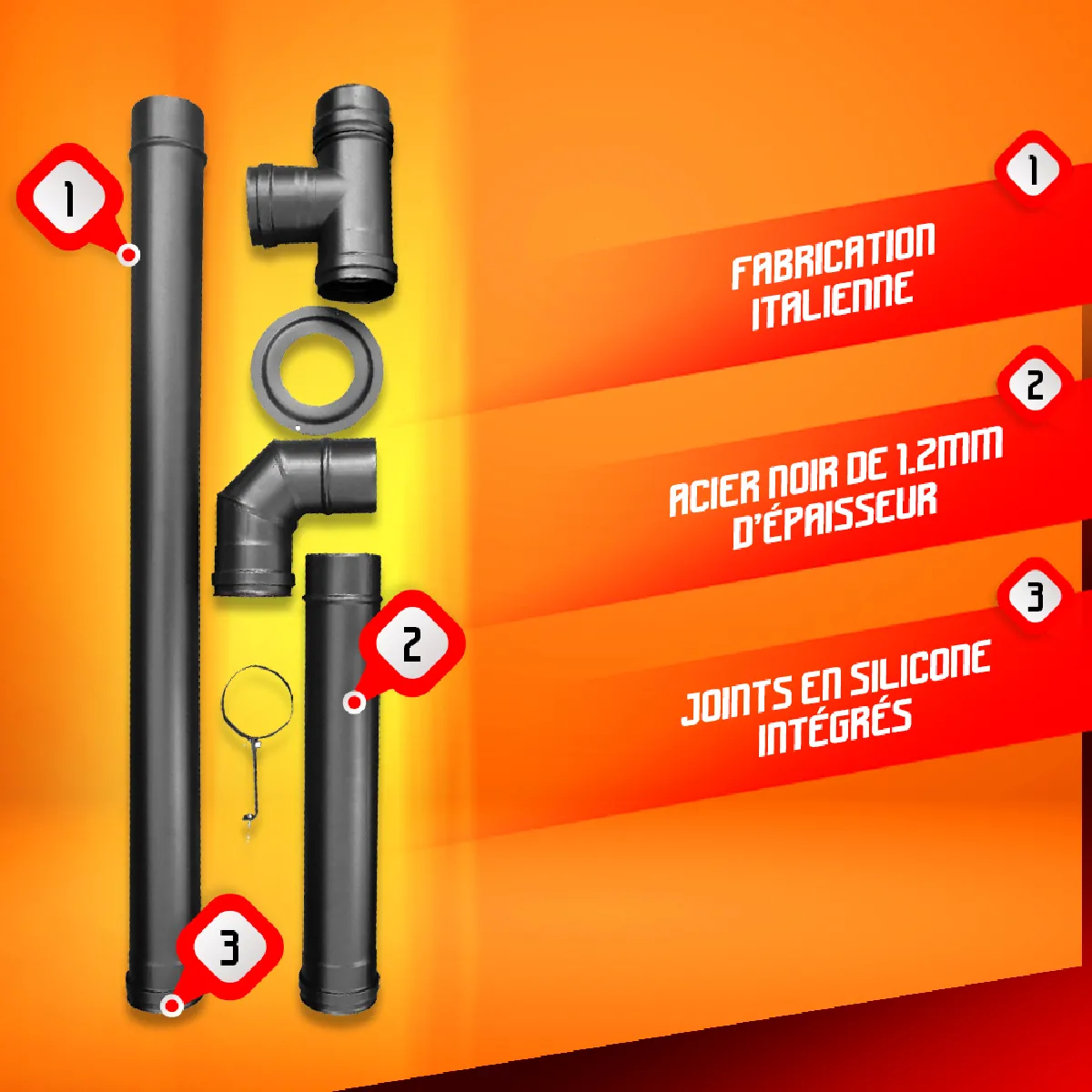 Kit installation poêle à pellets - Acier peint - Tuyaux et raccords - Noir