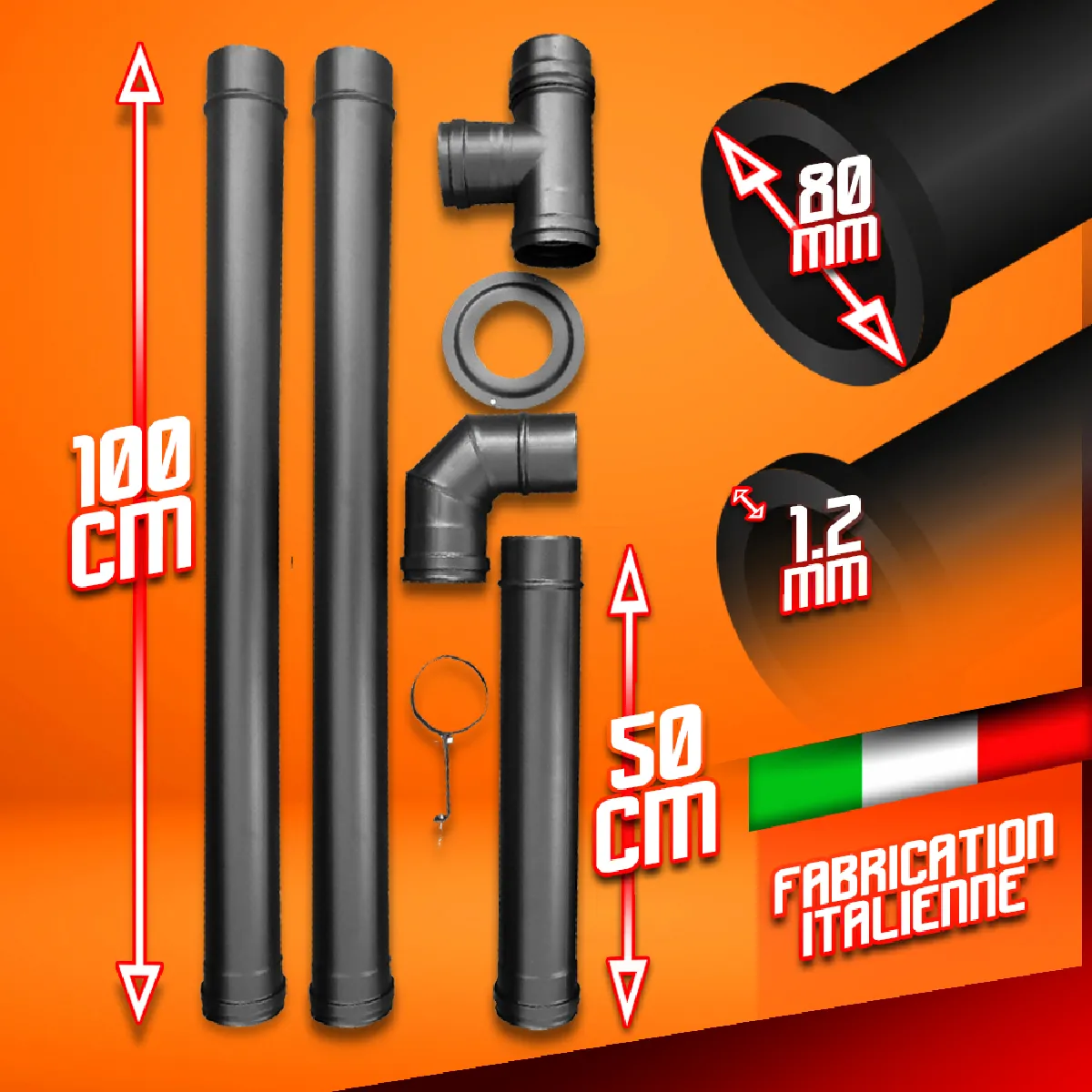 2 tuyaux droits 100cm diametre 80mm
