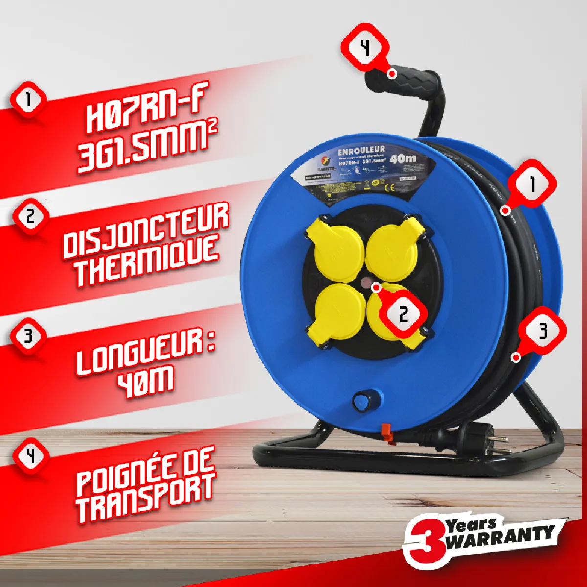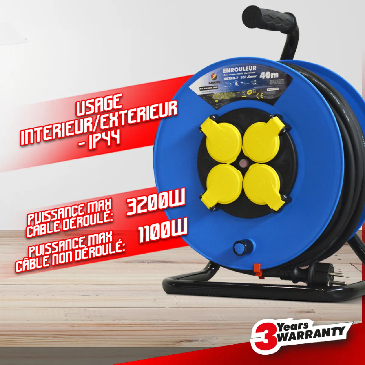 I-WATTS PRO Enrouleur 40m 4 Prises