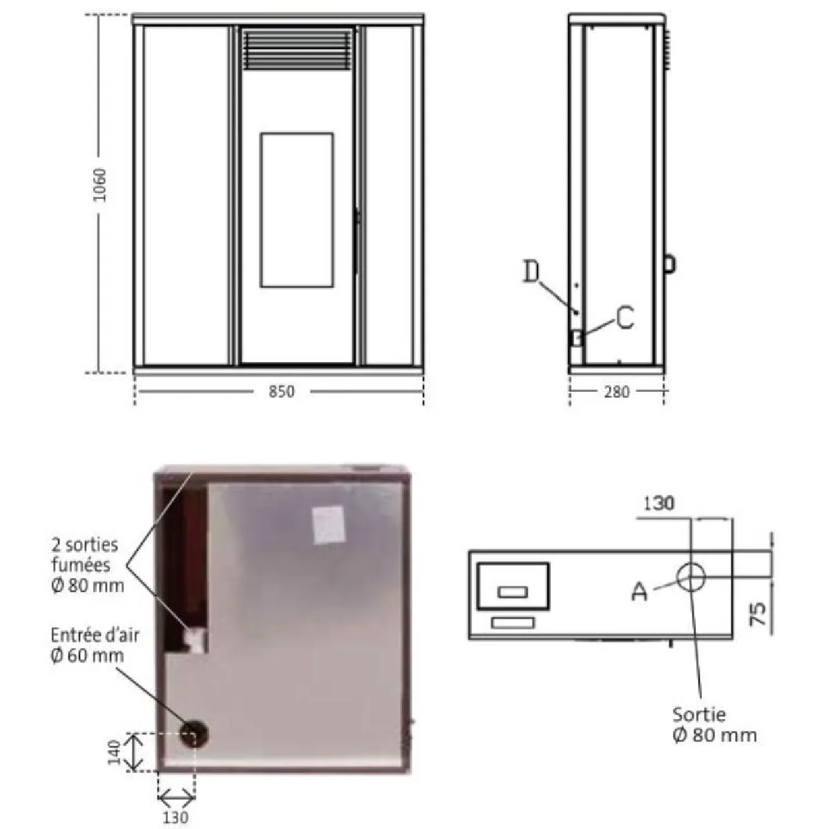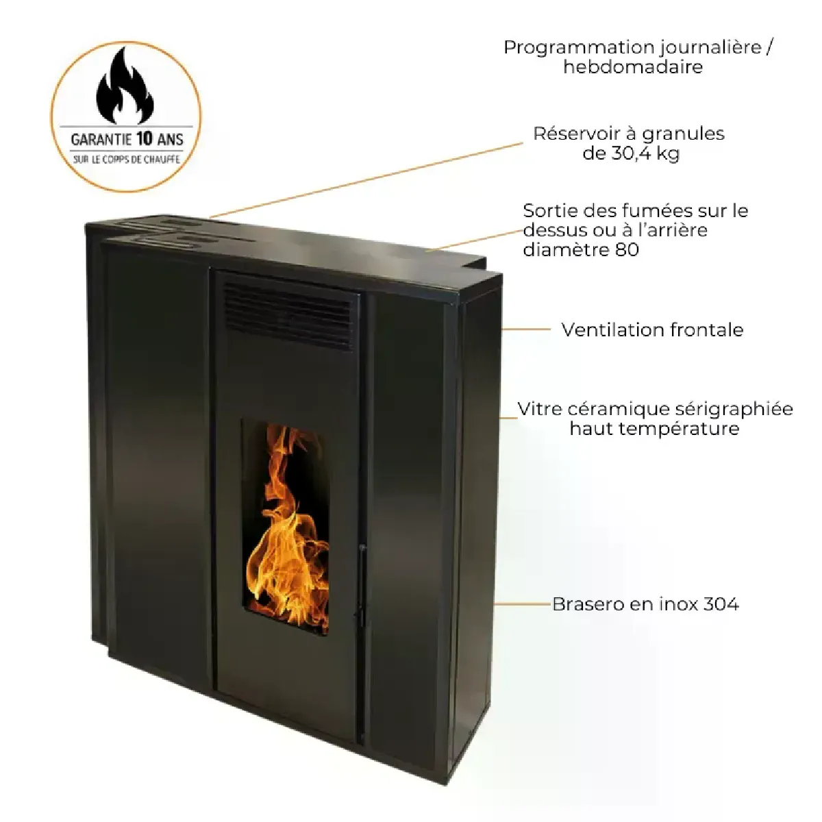 Poêle à granulés étanche - 10 kW - Réservoir 25 kg - Extra-plat