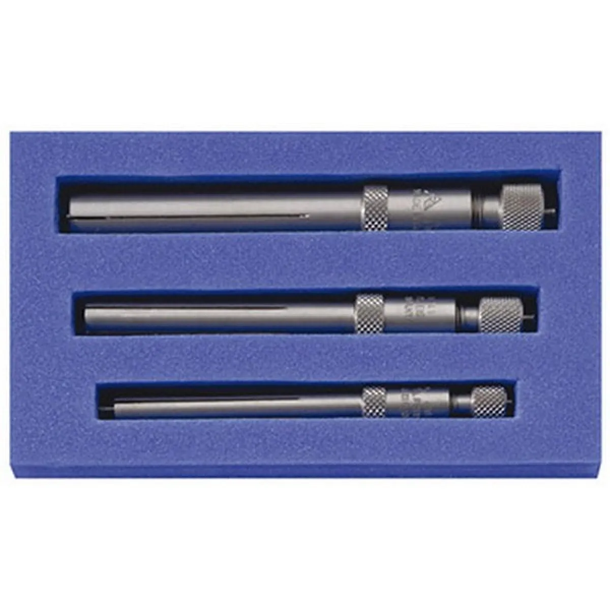 Jeu de pointeaux de centrage, réglable, Quantité : 3 pièces - Pointe de pointeau traitée de manière spéciale - Réglable par une vis moletée - Pour un amorçage exact et sans décalage sur les pièces - Pour l'alignement régulier de la douille de centrage dans le gabarit de perçage ou dans la pièce modèle Livraison : dans un emballage en matière plastique. Contenu : 3 pointeaux de centrage 6- 8 8- 11 11- 16 mm.