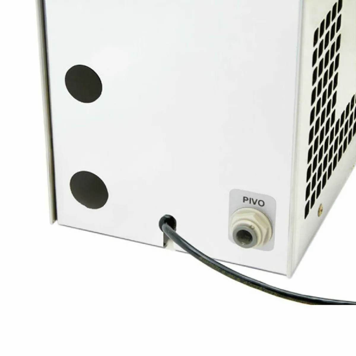 Le nouveau modèle intègre un compresseur amélioré pour une performance accrue. L'ensemble sous comptoir reste compact avec des dimensions de 170 × 280 × 325 mm et un poids de 14.5 kg, convenant aux bars mobiles et espaces réduits. Le bac d'égouttage en acier inoxydable maintient le plan de travail propre. L'alimentation 230 V / 50 Hz (267 W, 1,16 A) convient aux installations classiques. Les connexions rapides John Guest simplifient les changements de ligne et le nettoyage périodique, tandis que l'adaptateur de nettoyage 30 mm facilite l'entretien courant pour préserver la qualité de tirage.