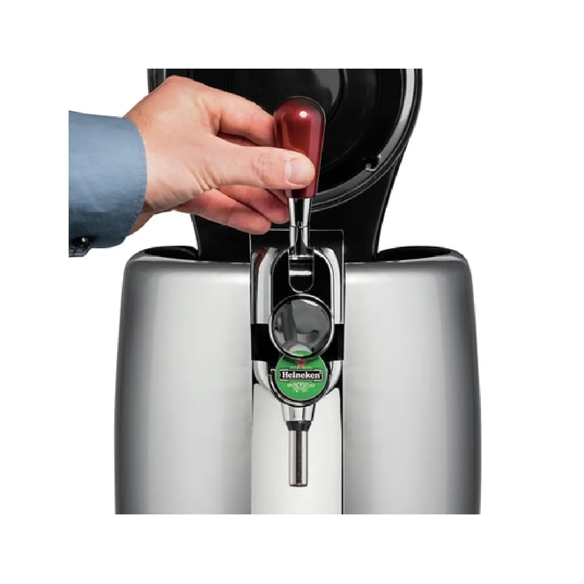 L'appareil accepte les fûts 5 L compatibles BeerTender, afin d'accéder à une large variété de bières avec un seul système de service. Le tube de service doit être remplacé à chaque nouveau fût, ce qui garantit une hygiène constante du circuit de tirage. Le plateau récolte-gouttes métallique/ plastique retient les excédents et se démonte pour un rinçage rapide. Le tirage à une main reste fluide, pour enchaîner les verres avec une mousse régulière et une température stable.