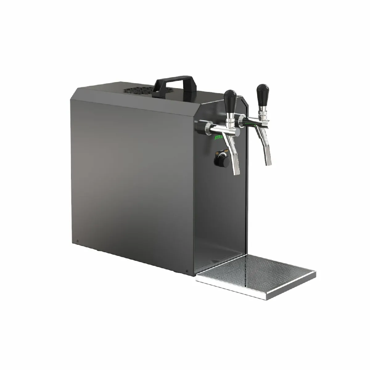 Pensée pour des tirages réguliers et stables, cette solution réfrigérée offre un débit de 50 l/h et deux sorties pour servir simultanément. La pompe à membrane intégrée permet le soutirage sans CO2, pratique pour les installations mobiles ou temporaires. Grâce à un groupe frigorifique sec, la mise en température est rapide en 2 à 4 minutes, avec une plage de contrôle de +3 à +10 °C pour adapter la fraîcheur. Le châssis noir compact accueille un système de robinet de refroidissement à sec à 2 tuyaux et des composants en acier inoxydable faciles à entretenir, assurant une utilisation fiable et un nettoyage simple au quotidien.