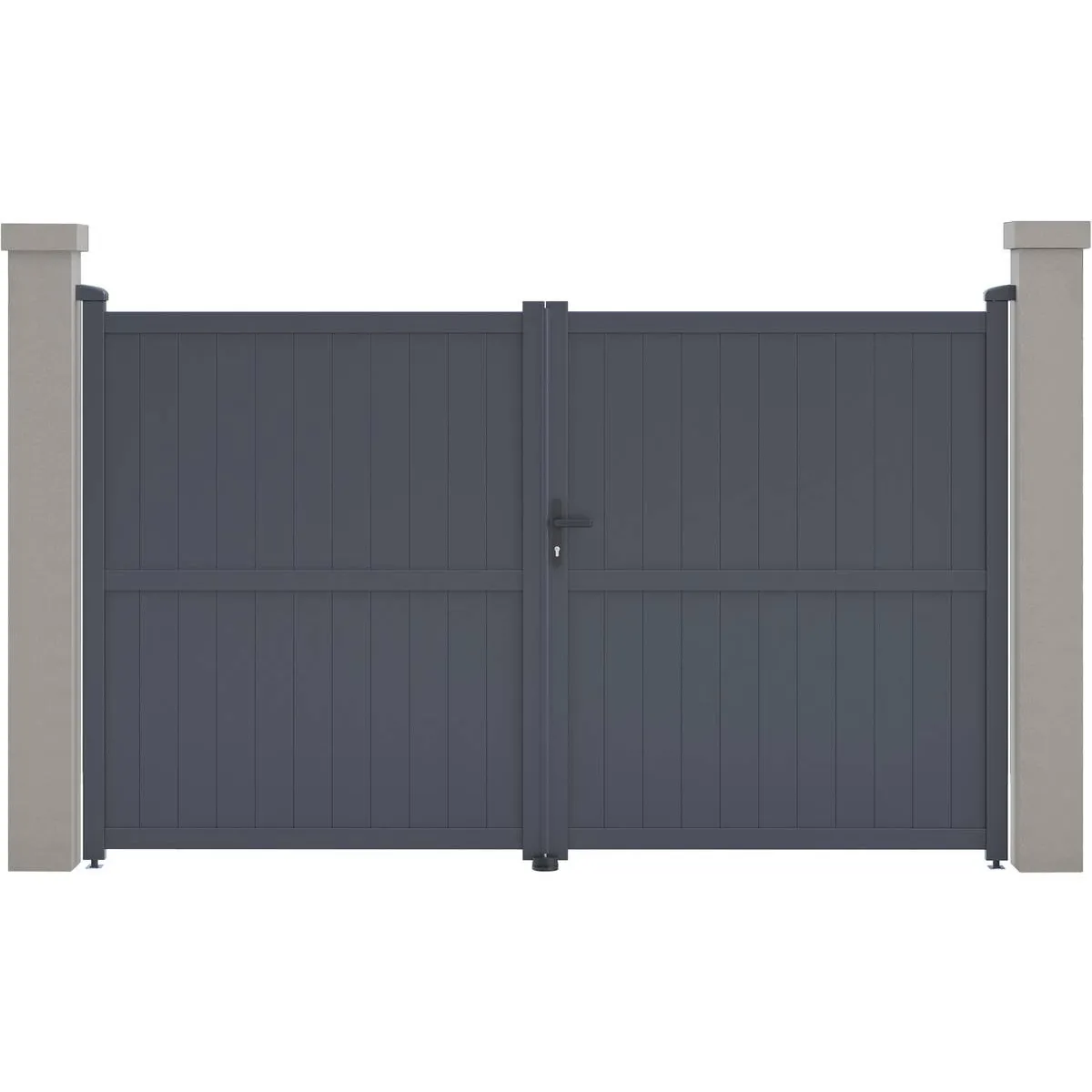 Portail aluminium "Maurice"Nous vous proposons le portail en aluminium "Maurice". Il viendra apporter modernité et sécurité à votre entrée, il protègera votre habitation d'une manière optimale. Il est particulièrement résistants aux intempéries et nécessite peu d'entretien au quotidien.De plus il offre une parfaite tenue dans le temps, grâce à sa structure en aluminium et a une bonne résistance aux UV et a un traitement antirouille.Son design plein vous protègera du voisinage et des passants et préservera votre intimité des regards extérieurs. Portail aluminium "Maurice" - Dimensions : 299.5 x 180.9 cm - Gris - Structure : aluminium - 2 portes avec serrure et poignée - Ancrages intérieurs et extérieurs - Anti-UV - Anti-rouille - Livré en kit - Piliers non inclus. .Descriptif: Portail aluminium Maurice Vendu en kit Piliers non inclus