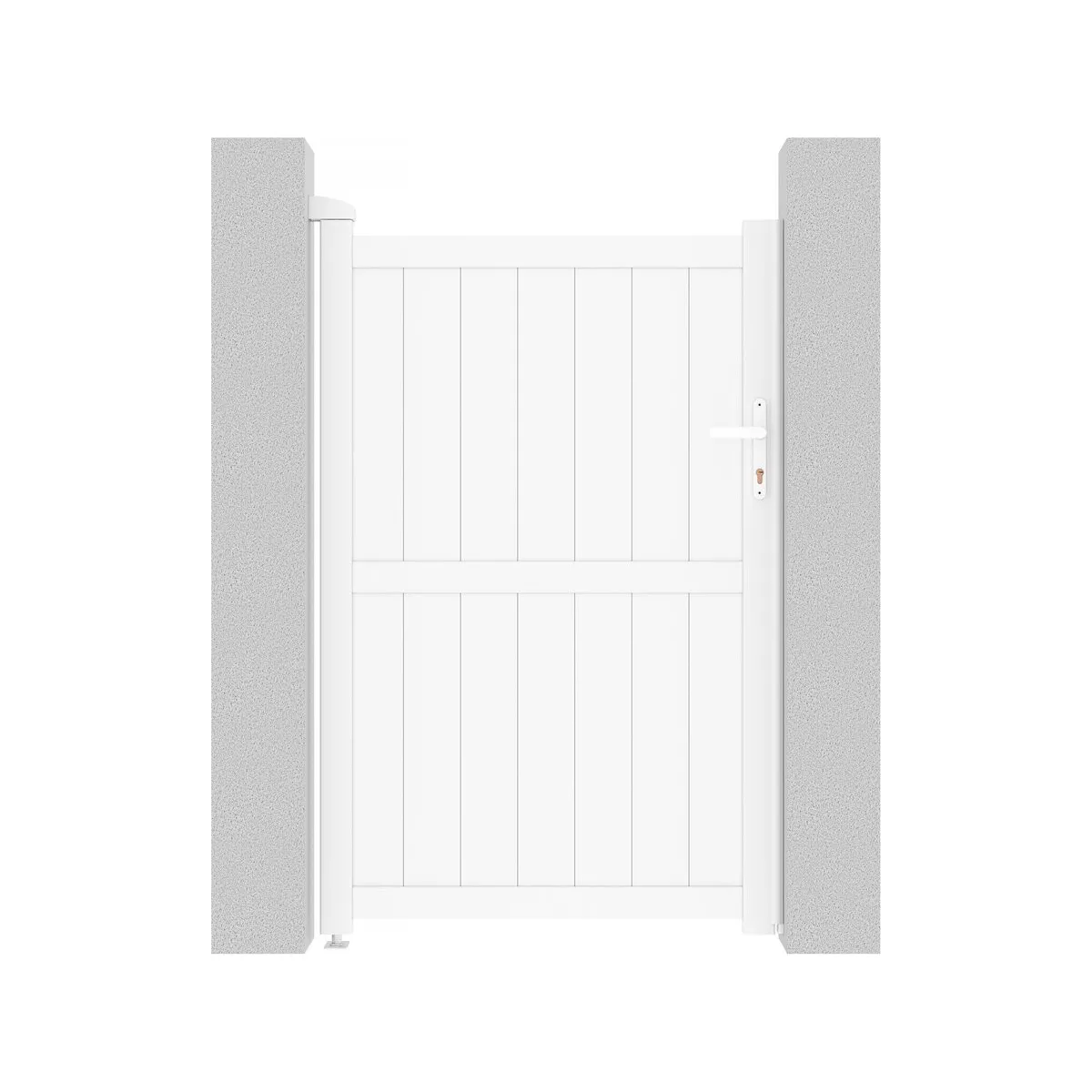 Portail aluminium "Lola"Nous vous proposons le portail en aluminium "Lola". Il viendra apporter modernité et sécurité à votre entrée, il protègera votre habitation d'une manière optimale. Il est particulièrement résistants aux intempéries et nécessite peu d'entretien au quotidien. De plus il offre une parfaite tenue dans le temps, grâce à sa structure en aluminium et a une bonne résistance aux UV et a un traitement antirouille.Son design plein vous protègera du voisinage et des passants et préservera votre intimité des regards extérieurs. Portillon aluminium "Lola" - Dimensions : 101.2 x 155.9 cm - Blanc - Structure : aluminium - 1 porte avec serrure et poignée - Ancrages intérieurs et extérieurs - Anti-UV - Anti-rouille - Livré en kit .Descriptif: Portillon aluminium Lola Vendu en Kit