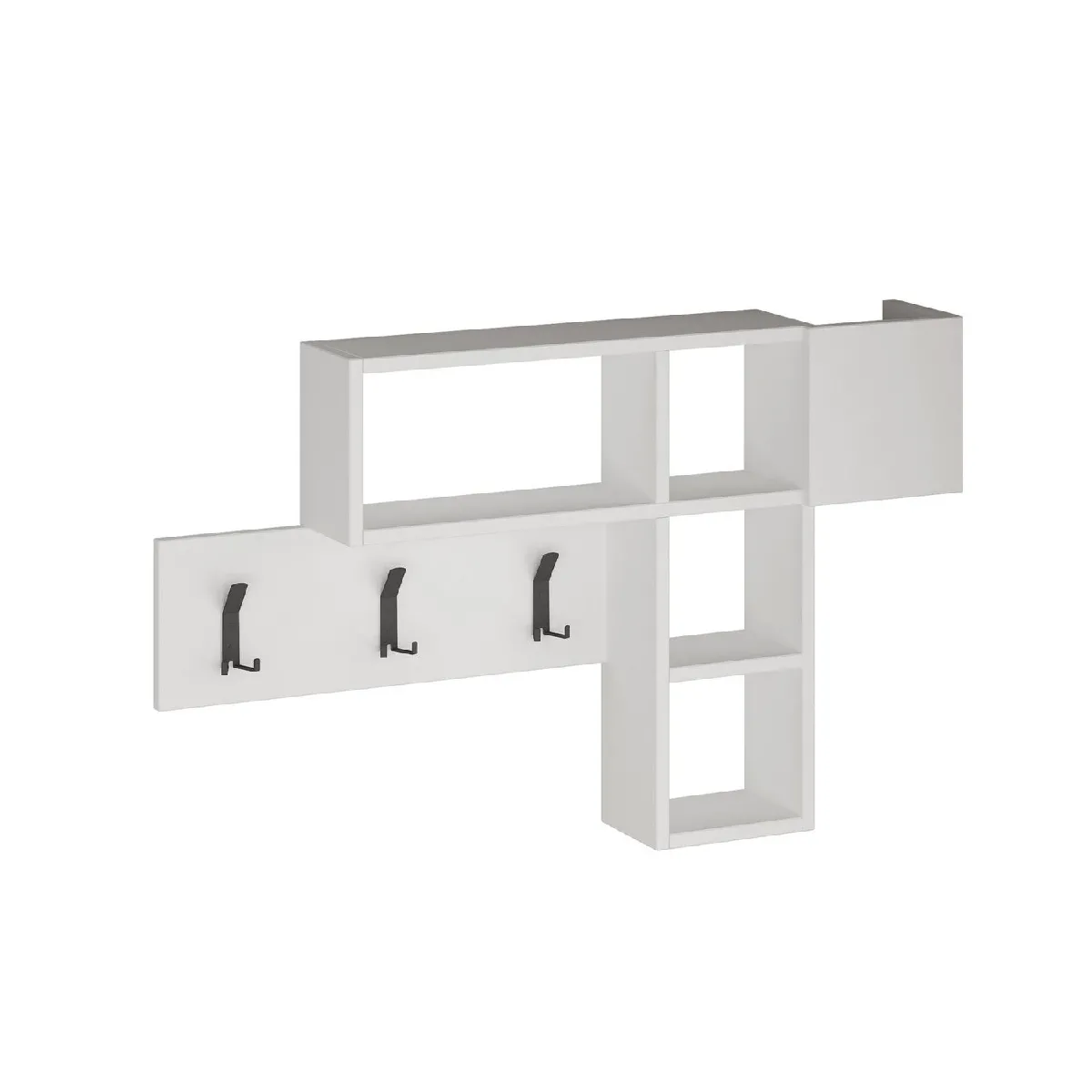 Commentaire vendeur : Ce porte manteau mural avec son étagère sera un meuble incontournable de votre entrée.FICHE TECHNIQUE- Porte manteau en panneaux mélaminés de 18mm- Crochets en métal- Couleur : BlancCARACTERISTIQUES TECHNIQUES- Dimensions : 99,5 x 61 x 15 cm- Poids : 8,1 kg