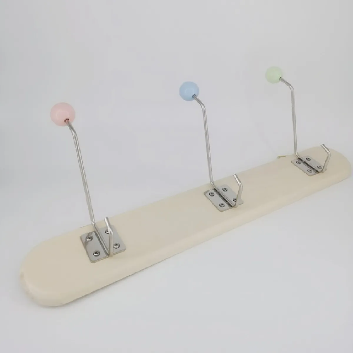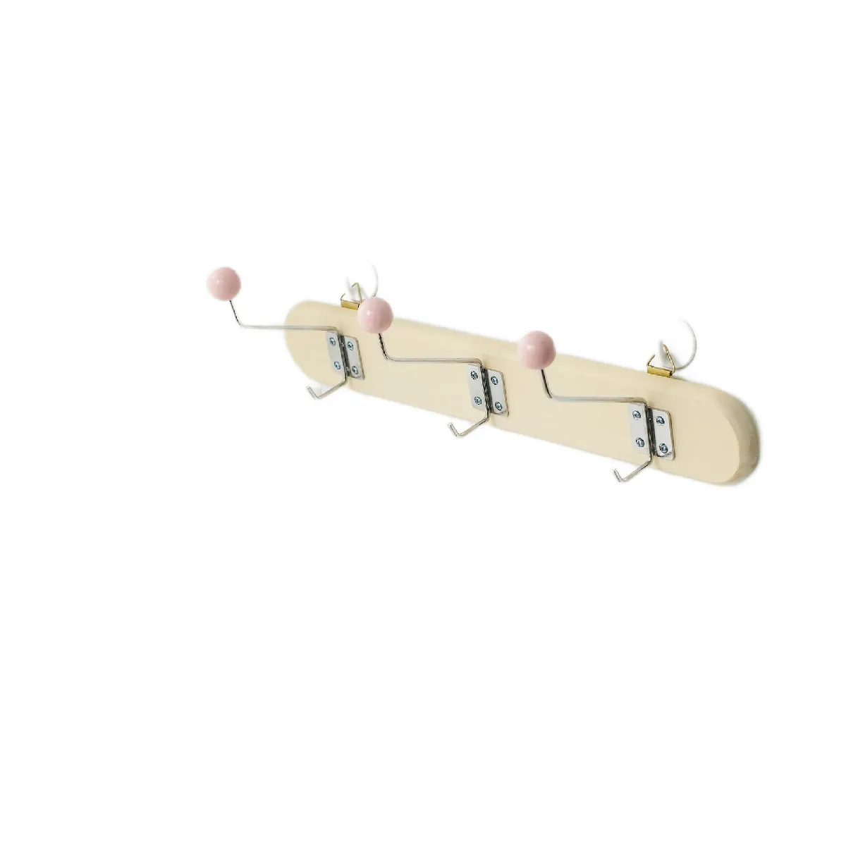 Crochet mural - Bois et fer - Design élégant - Couleur blanc - 3 crochets - 45 x 7 x 3 cm