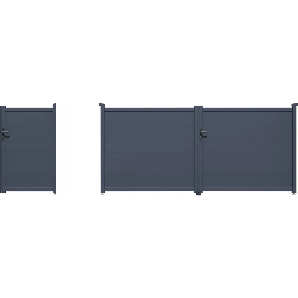 Pack portail + portillon - Aluminium gris - Portail 349.5x155.9 cm - Portillon 101.2x155.9 cm