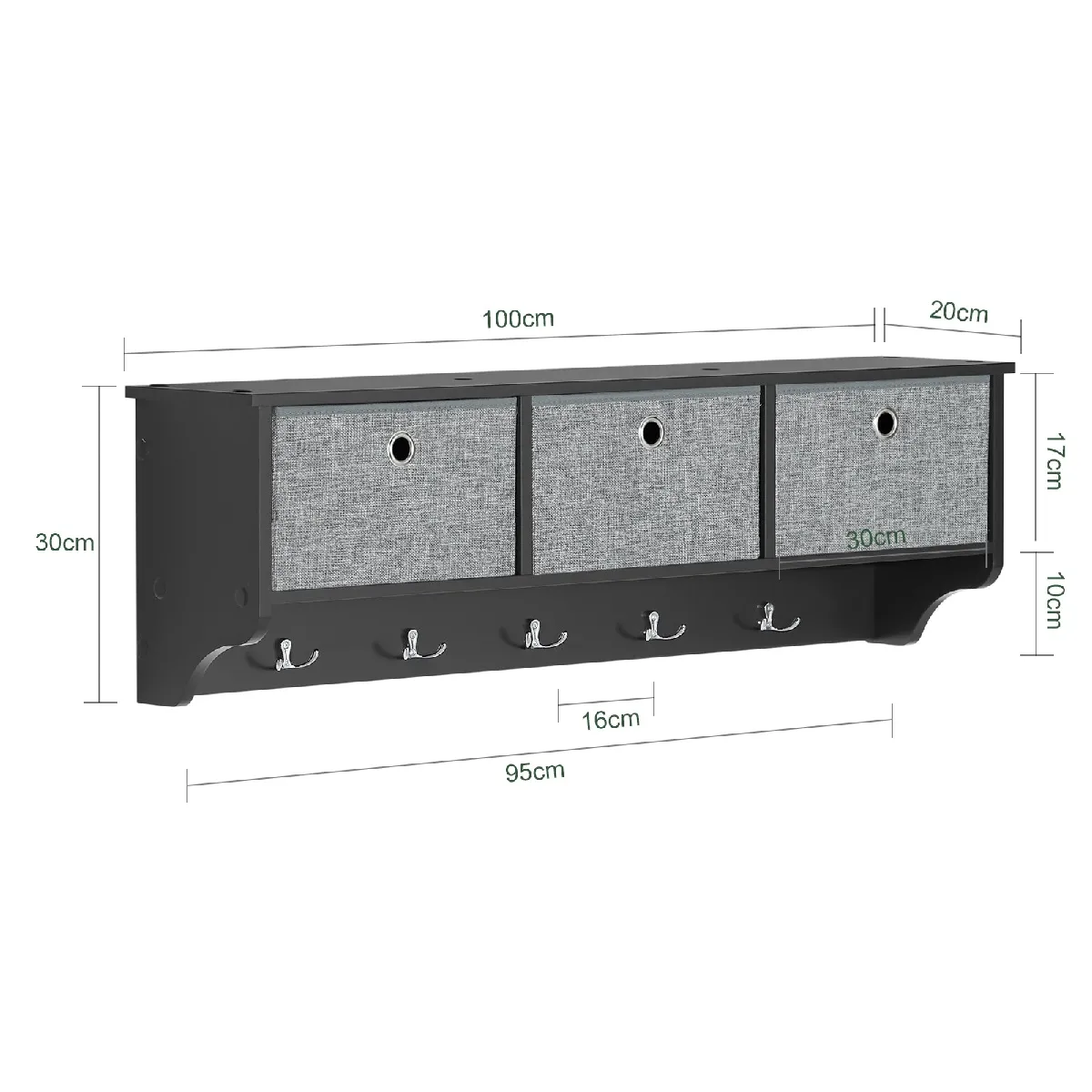 Portemanteau mural avec 3 tiroirs - 5 crochets en métal - Bois MDF - 100 x 30 cm
