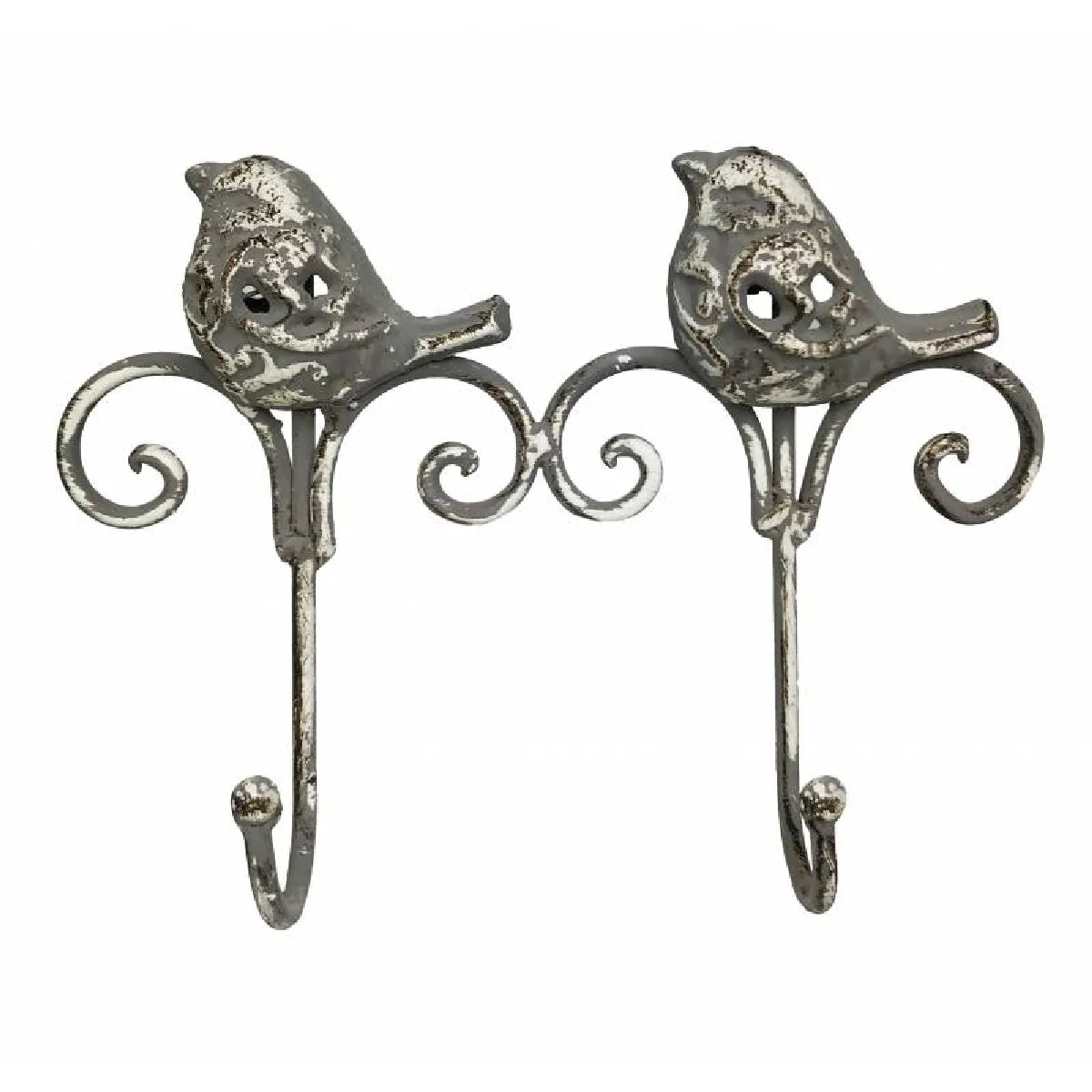 Patère murale - Motifs oiseaux - Fonte grise - 2 crochets - Dimensions 5 x 17 x 21.5 cm