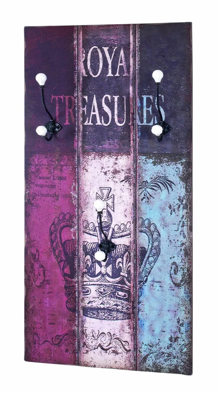 L'optimisation de l'espace se fait discrètement grâce à la structure verticale de 80 cm et à la profondeur réduite de 12 cm, idéale dans une entrée, un couloir ou un angle. La façade en MDF affiche un style vintage multicolore qui s'intègre facilement à un intérieur contemporain ou rétro. Trois crochets en métal noir et des boutons en céramique blanche offrent des points d'accroche différenciés pour vestes, sacs et accessoires, limitant le chevauchement et facilitant le tri quotidien.