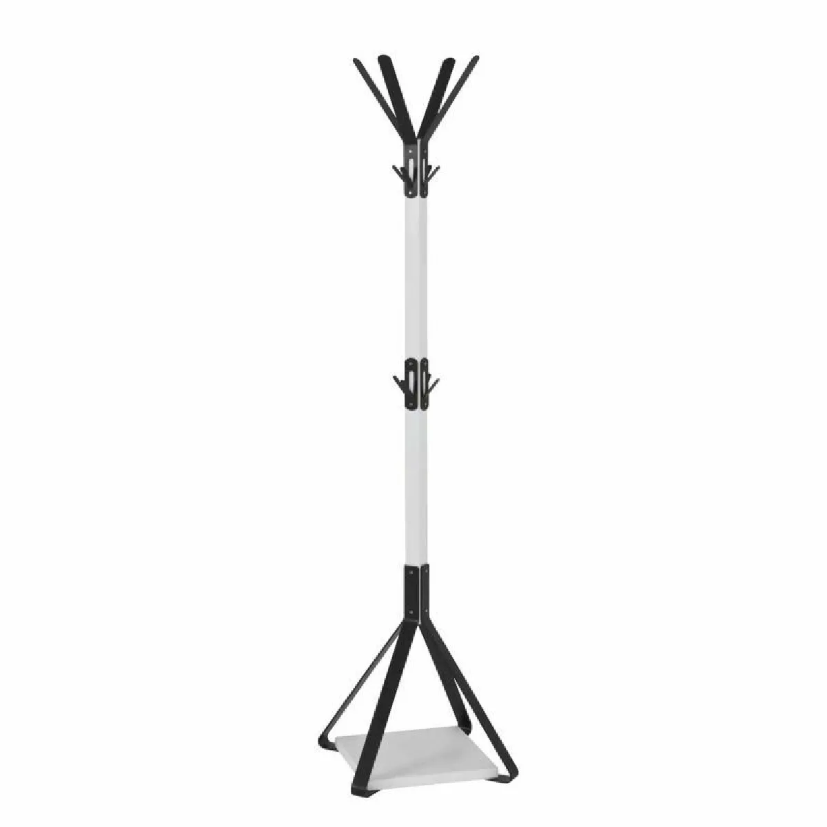 La structure en acier offre une bonne rigidité pour accueillir les vestes du quotidien, tandis que la hauteur de 178 cm facilite l'accès aux manteaux longs. Avec son emprise au sol de 41 x 41 cm, ce porte-manteau optimise l'espace d'une entrée ou d'un bureau sans encombrer. La finition Blanc s'intègre à différents intérieurs, avec des éléments Noirs qui soulignent le style. Le montage est requis et se réalise à partir d'un colis unique pesant 8,28 kg pour une manipulation simple.