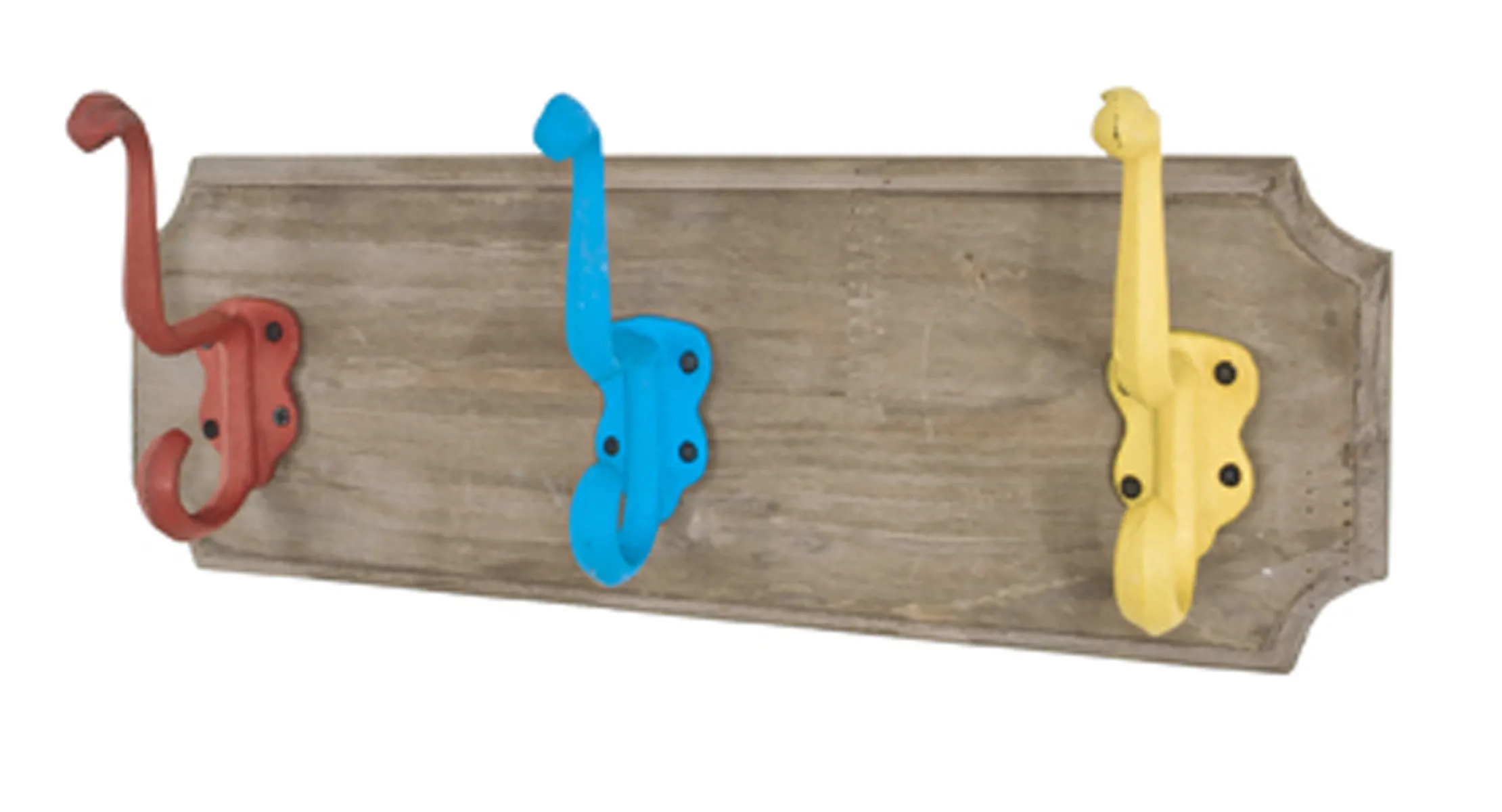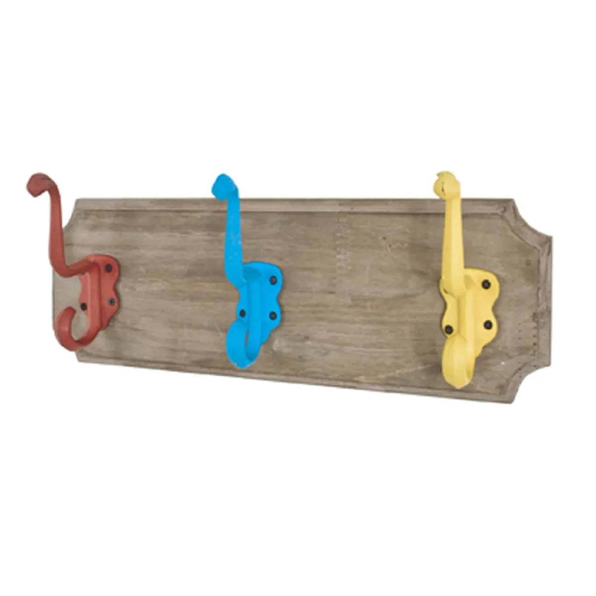 Porte-manteau mural en bois - 4 accroches - style vintage - multicolore