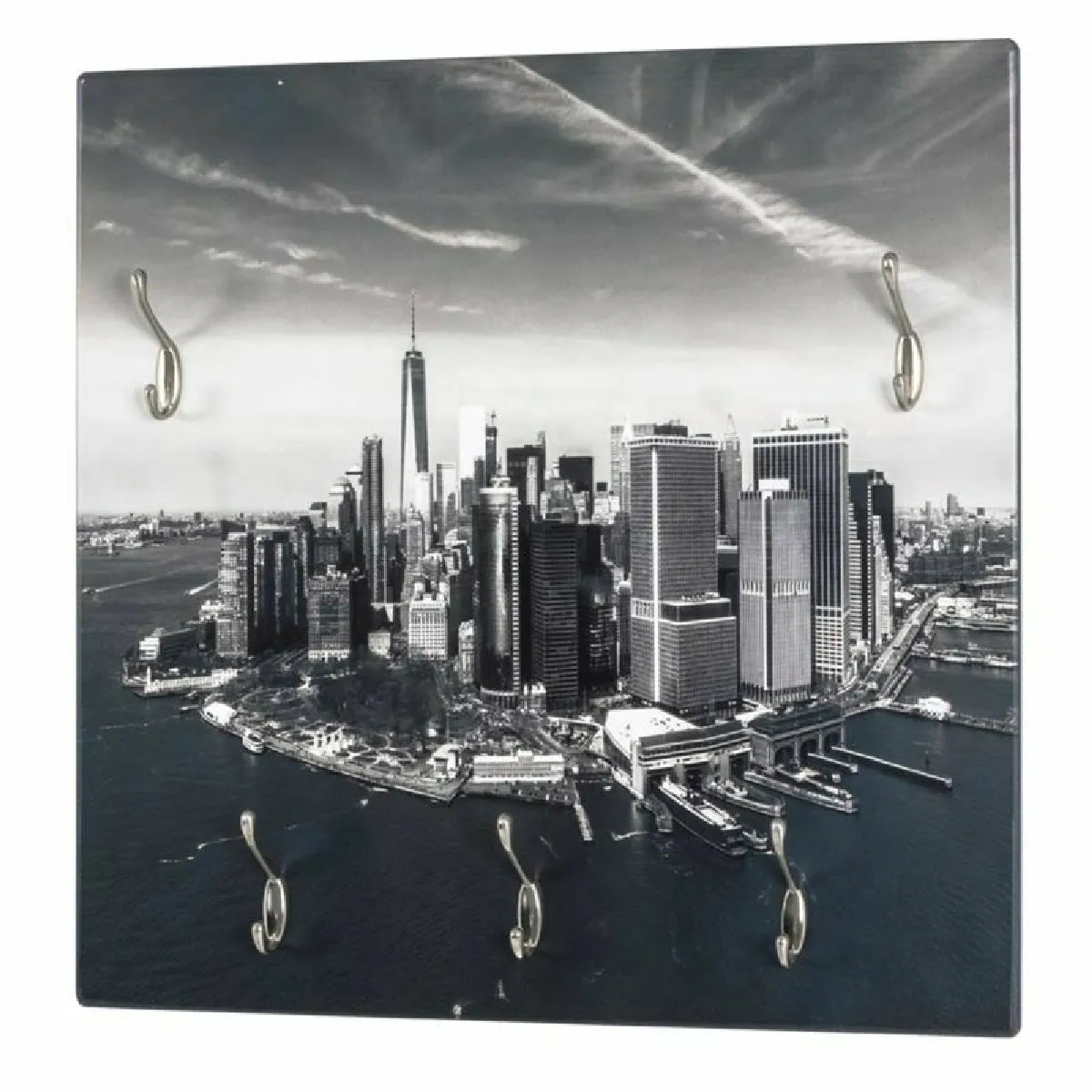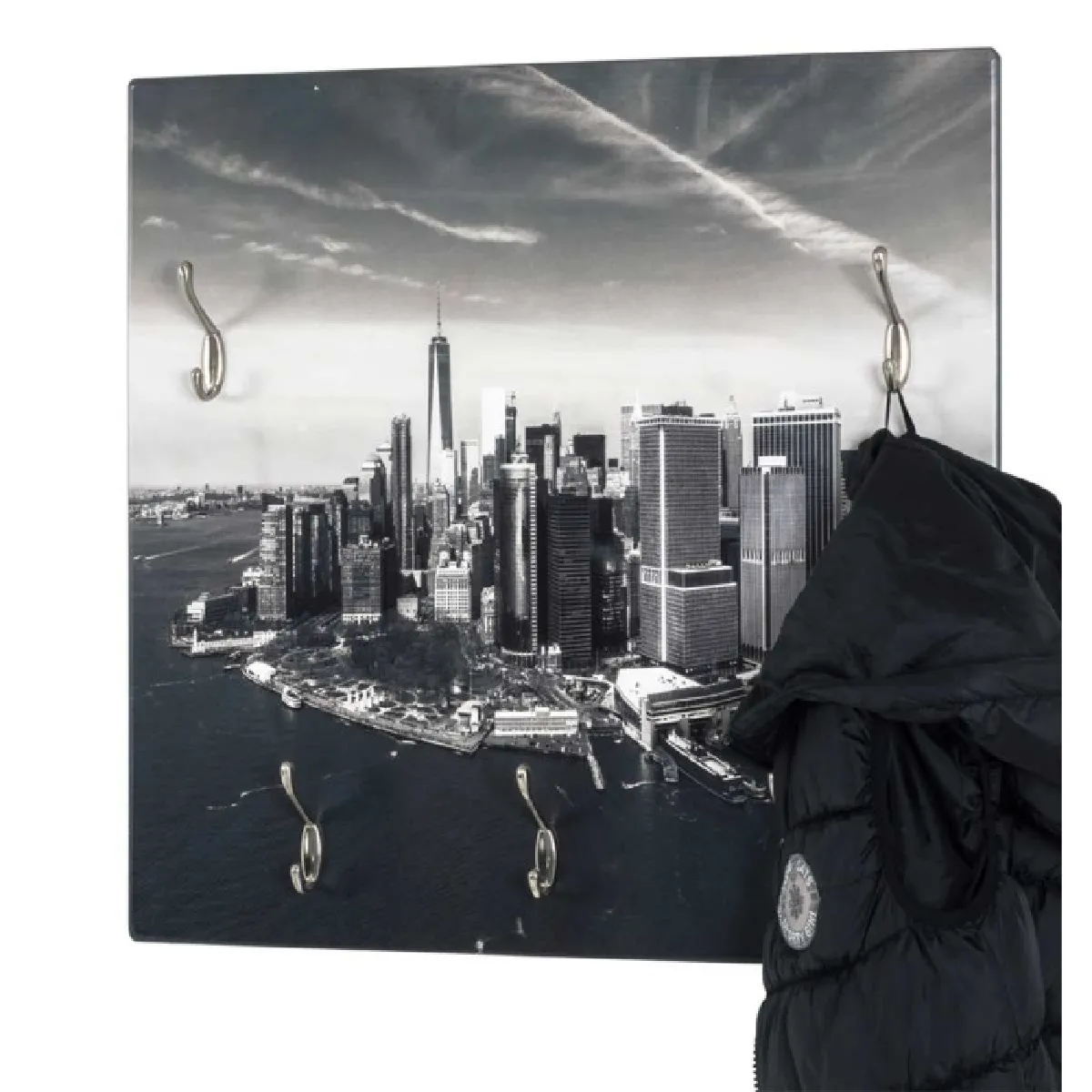 La surface carrée de 60 x 60 cm offre une solution compacte pour ranger manteaux et accessoires dans une entrée, un bureau ou une chambre. La structure en MDF et métal de couleur gris associe rigidité et sobriété pour s'intégrer à différents intérieurs au style design. Avec ses 5 crochets, elle permet de répartir les pièces du quotidien afin d'éviter l'encombrement et de garder les textiles à portée de main. Le format de 8 cm de profondeur limite l'empreinte au mur, tout en assurant une prise aisée des vêtements.