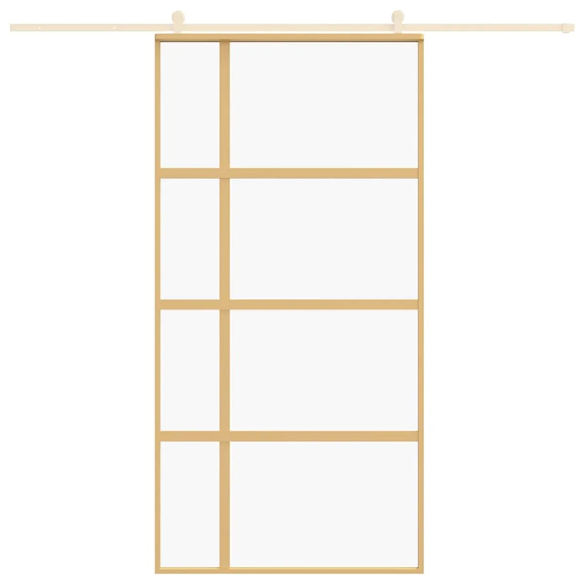 Porte coulissante en verre ESG - Cadre aluminium - Doré - 102,5x205 cm - Coulissement silencieux