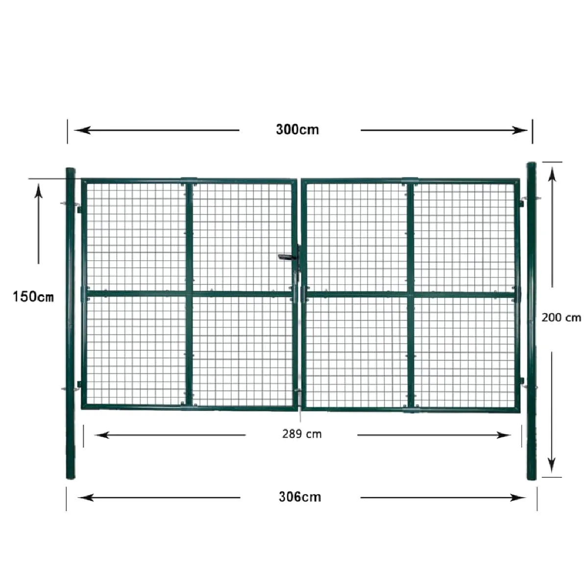 Portail de clôture - Acier enduit - 306 x 200 cm - Verrou et charnières incl.