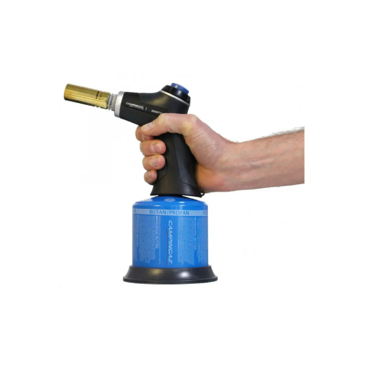 Présentation : La lampe à souder CAMPINGAZ - VT 2000 PZ dispose d'une excellente prise en main et d'une très bonne précision grâce à son ergonomie et son design révolutionnaire. Elle est équipée d'un brûleur en laiton X1700 et pour multiplier ses fonctions, le brûleur est interchangeable avec d'autres accessoires. Pour une simplicité d'utilisation, la lampe à souder est dotée du système EasyClic Plus qui permet le raccordement de la lampe à souder à la cartouche en 1 clic.Le débit de la flamme est réglable en une seule main jusqu'à une température de 1750 °C. Equipée d'un système d'allumage piezo, elle est très facile d'utilisation. Enfin, elle a une autonomie supérieure à 3 h 30 (avec une cartouche CV470+) et est livrée avec un support PVC qui accueille les cartouches CV300+ pour une plus grande stabilité.