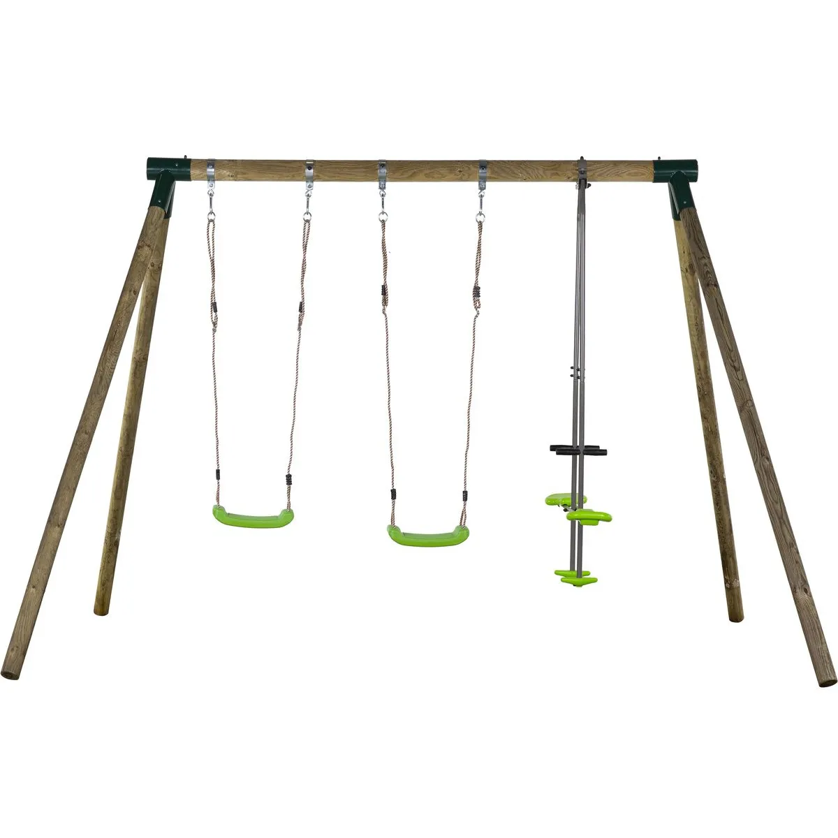 Habitat Et Jardin Portique bois Lana - Avec 2 balançoires et 1 vis-à-vis. |