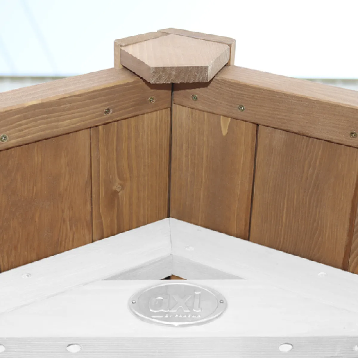 - Structure : bois marron de type portique pour une intégration naturelle au jardin