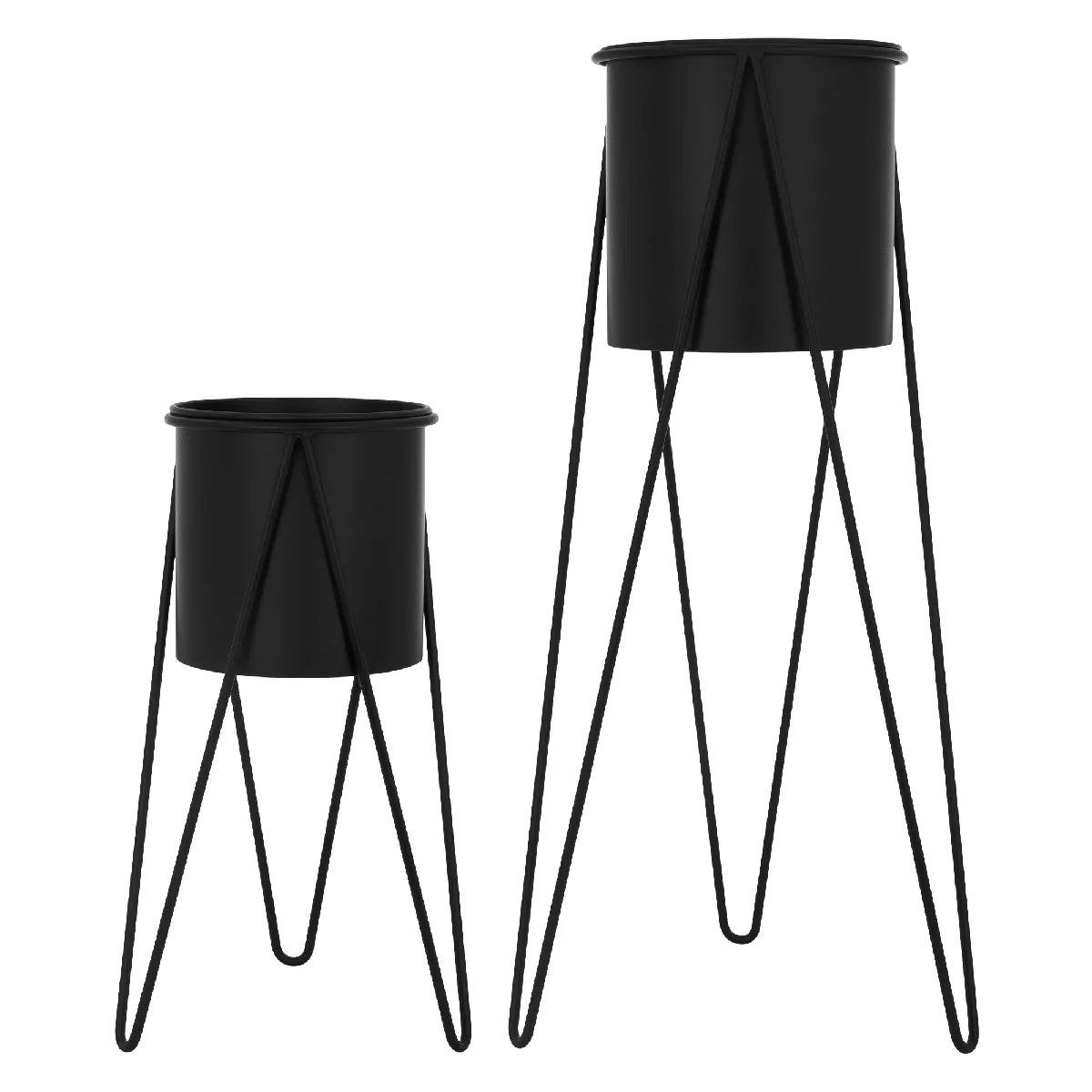 Le plus grand porte-bouquet mesure 75 cm de haut, 35,5 cm de large et 34 cm de profondeur, le plus petit 48,5 cm de haut, 27 cm de large et 27 cm de profondeur. Grâce à leur forme géométrique et aérée, les plantes sont placées au centre. Un support pour plantes se compose de 2 parties : Le pot et le support métallique. Le pot amovible est facile à retirer. Vous pouvez ainsi utiliser le support et le pot séparément.