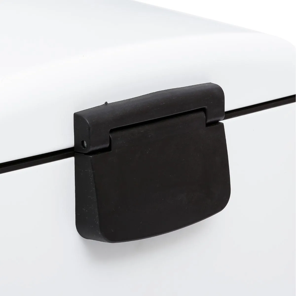 Commentaire vendeur : Informations Techniques : Dimensions : L. 34 x l. 32 x H. 61 cm Matières : Métal & Polypropylène Spécificités : Poubelle à pédale à fermeture silencieuse Contient un seau amovible avec une poignée au dos Capacité : 30 L Sac poubelle conseillé : 50 L Nettoyage facile Poids : 4 kg Couleur : Blanc
