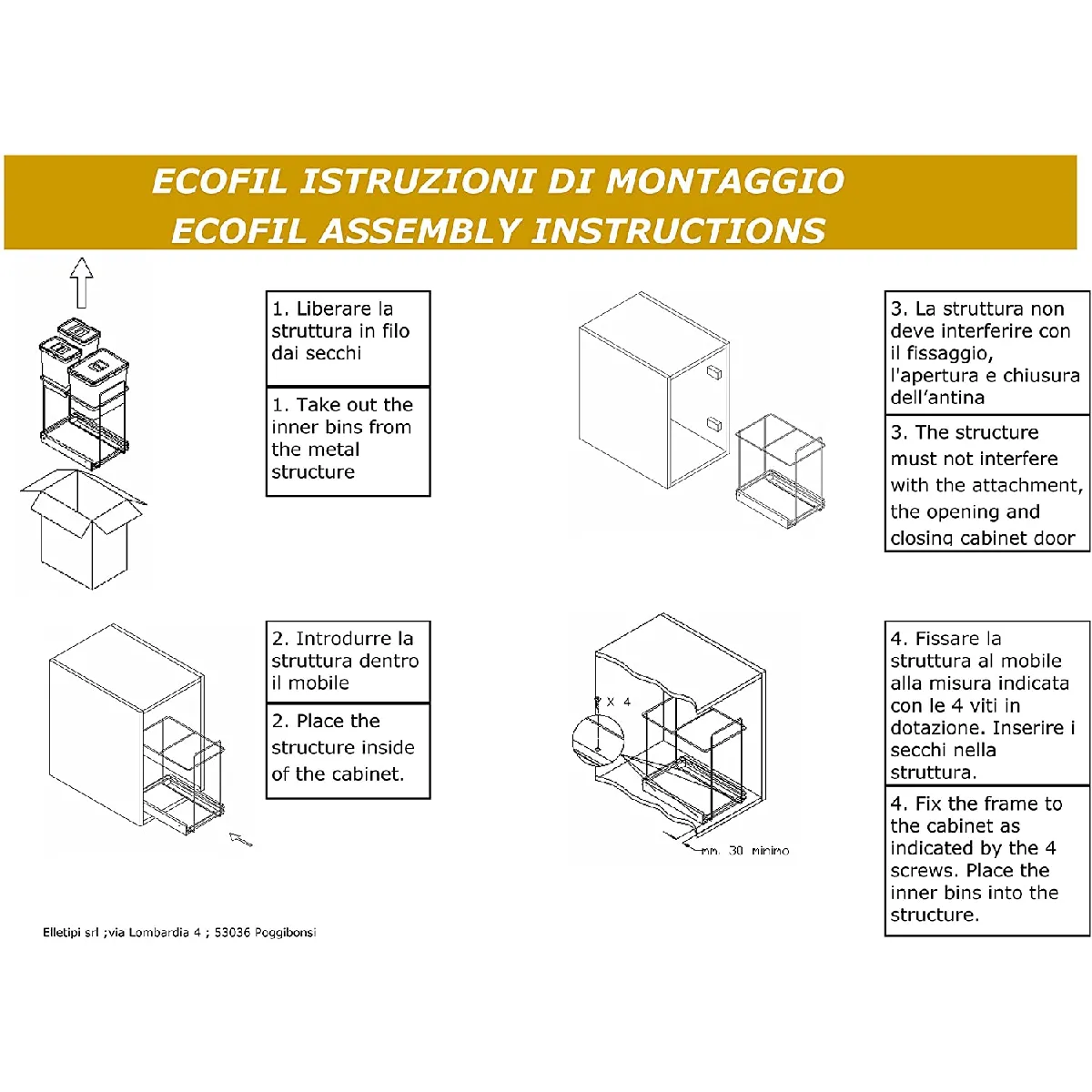 ELLETIPI - - collecteur en fil d'acier et de plastique; compléter avec un guide sur le métal. Ligne de seaux Duch a pensé extrêmement léger et durable pour longtemps et sont conçus pour une polyvalence maximale en tant que concepts-optimisation de l'espace réduit. Les boîtes intérieures avec des couvercles (tous) pour un filtrage sur un total de 18 + 8 + 8 litres. sont insérés fait à (inclus) dans vos casseroles avec bases rapide et facile à installer avec autoforanti cinq vis. Poubelle pour tri sélectif, extractible.