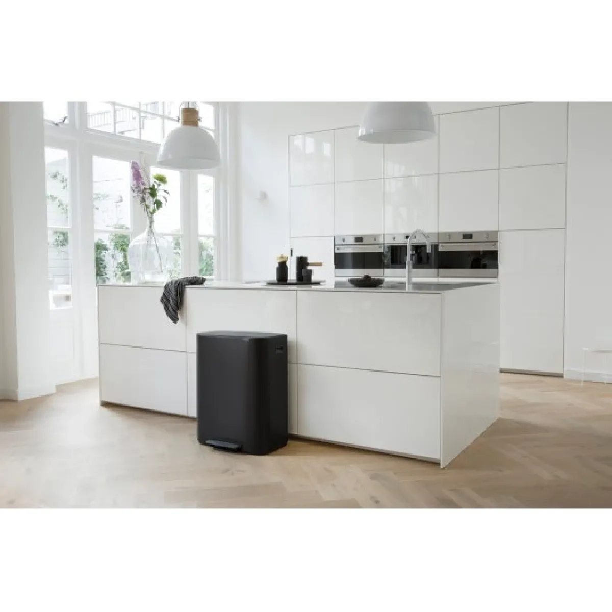poubelle à pédale 2x30l matt black - 211508 - La poubelle à pédale Bo 211508 de Brabantia est dotée de 2 seaux de 30 litres chacun. Une solution esthétique pour gérer vos déchets au quotidien avec élégance ! Cette poubelle à pédale allie un magnifique design et une solution pratique pour trier facilement vos déchets. Grâce aux 2 seaux intérieurs séparés de 30 L chacun, cette poubelle peut contenir 2 types de déchets. Elle s'adapte parfaitement contre le mur pour un gain de place et jouit d'une grande stabilité grâce à ses pieds anti-dérapants. Sa fermeture unique Soft Touch offre une utilisation simple par le simple contact de vos doigts. Le couvercle se ferme doucement et le fonctionnement de la pédale est ultra-léger. Le couvercle peut rester ouvert pour les tâches plus importantes (épluchage des légumes, etc ... ). Nettoyage facile : les 2 seaux intérieurs sont amovibles. Facile à déplacer grâce aux 2 larges poignées latérales. Sacs poubelles BRABANTIA PerfectFit adaptés avec lien de fermeture (code O de 30 L), faciles à placer sans débordements disgracieux. Poubelle livrée avec un échantillon de sacs poubelles. Fabriquée dans des matériaux de qualité.