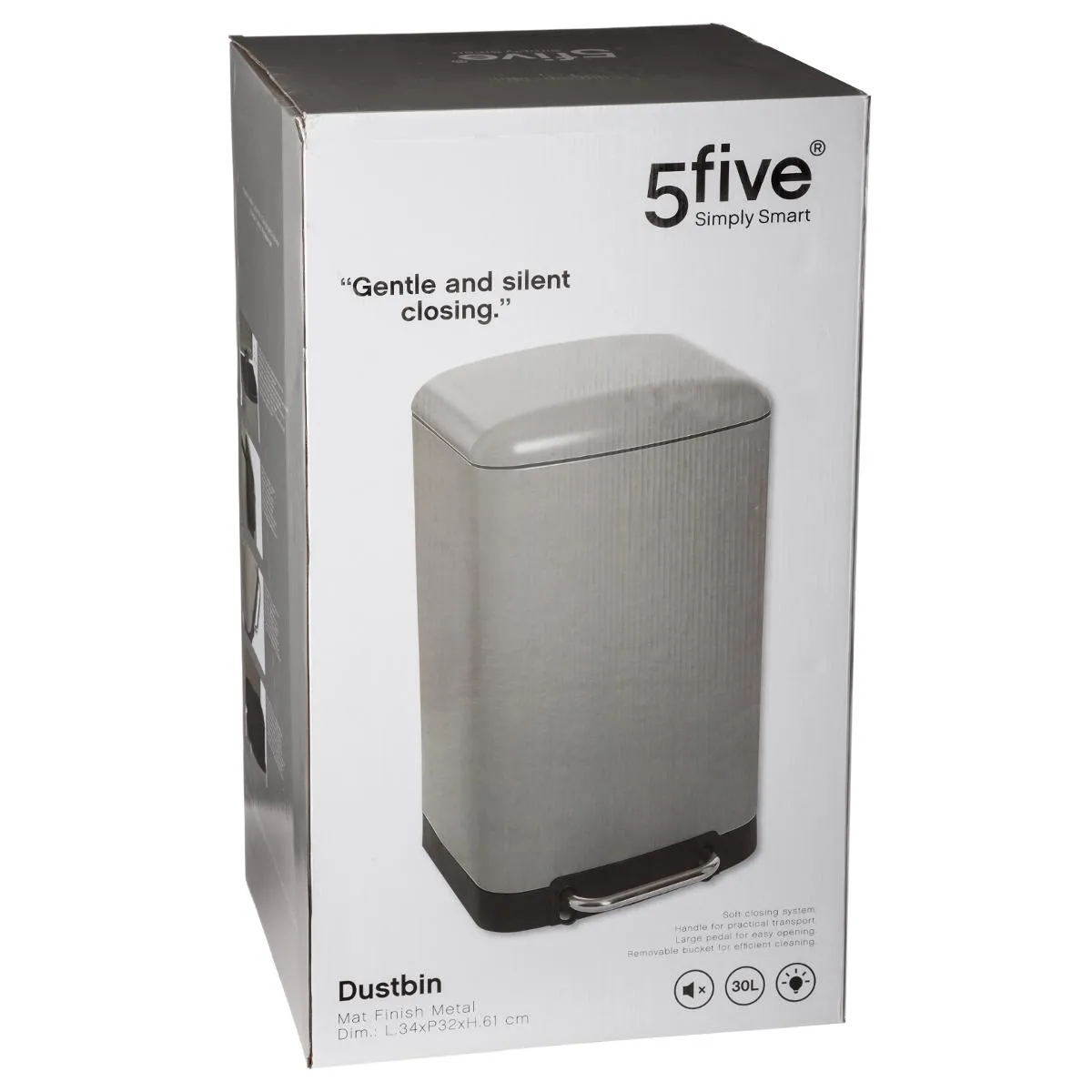Commentaire vendeur : Informations Techniques : Dimensions : L. 34 x l. 32 x H. 61 cm Matières : Métal & Polypropylène Spécificités : Capacité : 30 L Poubelle à pédale à fermeture silencieuse Contient un seau amovible avec une poignée au dos Sac poubelle conseillé : 50 L Nettoyage facile Poids : 4 kg Couleur : Taupe