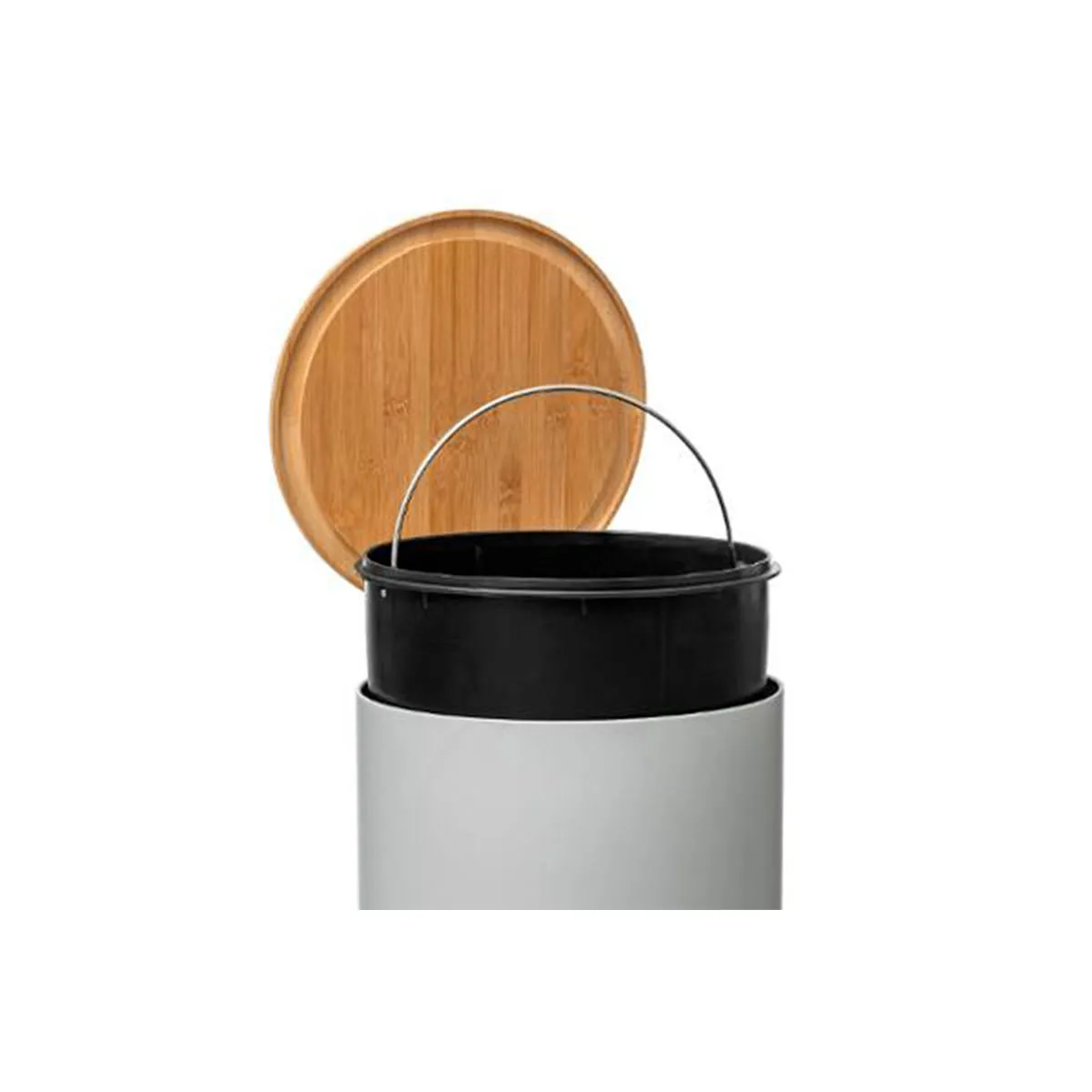 Commentaire vendeur : Informations Techniques : : Dimensions : Fermée : L. 37,7 x l. 29,2 x H. 59,5 cm Ouverte : L. 37,7 x l. 29,2 x H. 91 cm Couvercle : D. 29 cm Pédale : L. 11 cm Corps : D. 30,5 cm Matières : Métal & Bambou Spécificités : Pratique & Utile Poubelle de cuisine À pédale Seau amovible Fermeture silencieuse Forme ronde Nettoyage facile Capacité : 30 L Poids : 3,4 kg Couleur : Blanc