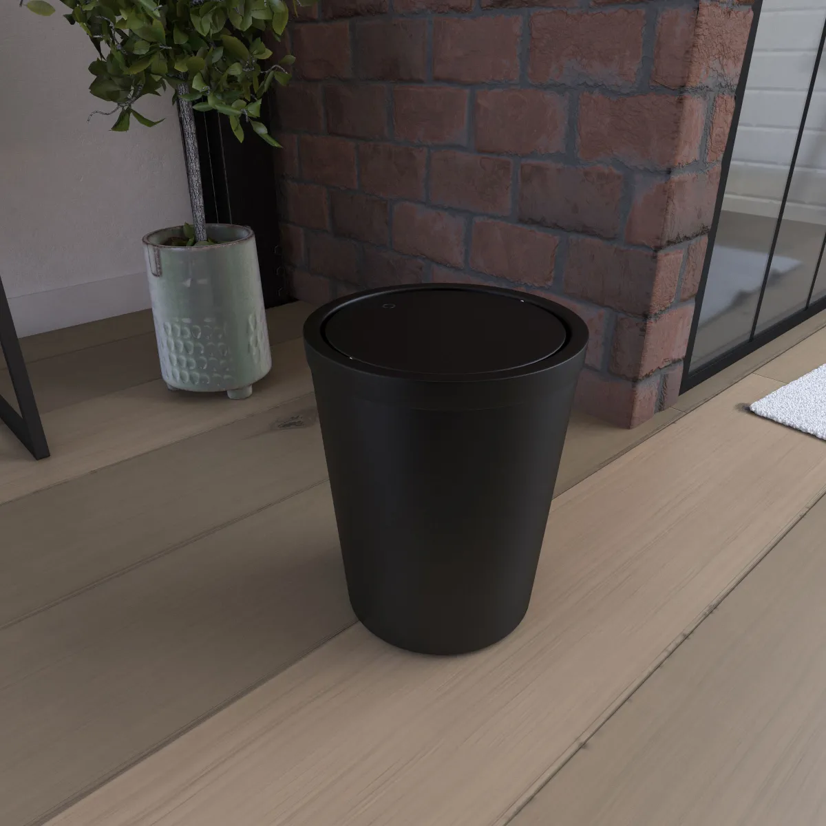 Poubelle conique - 5L - Métal - Couvercle pivotant - Antidérapant - Design Français