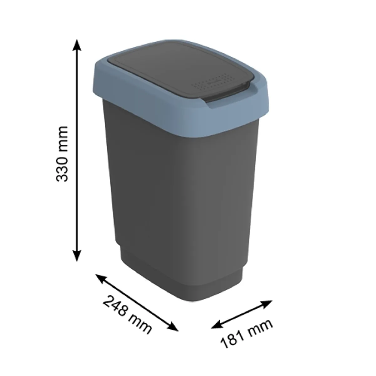 Poubelle pour déchets - Capacité 10 L - Swing cover - Noir/Bleu foncé