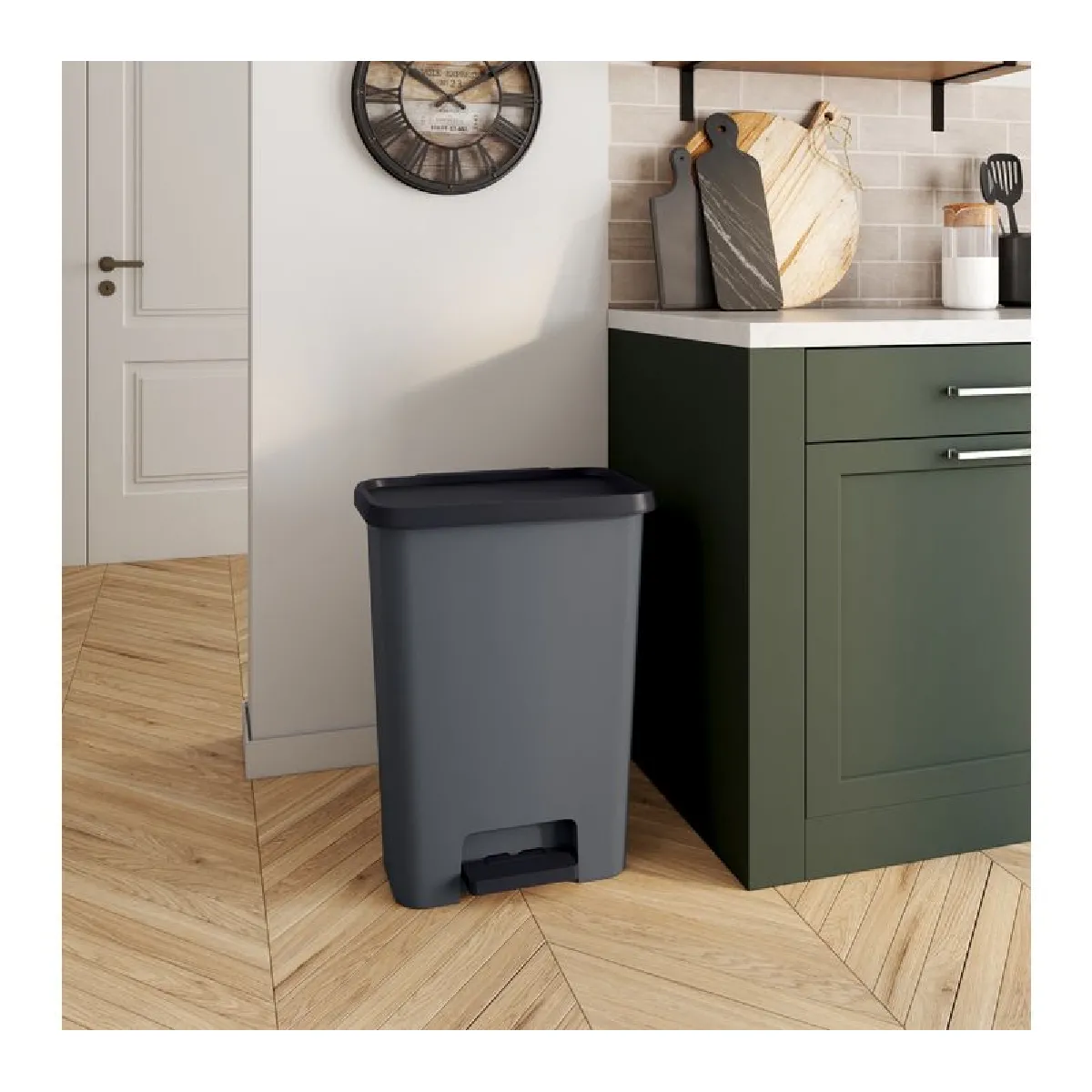 Cette poubelle gris anthracite joue la carte de la discrétion. Sa teinte intemporelle sera parfaite dans une cuisine classique, contemporaine ou même industrielle. Son format assez plat permet de la placer contre un mur sans perdre d'espace. Ce modèle est également disponible en version 25 litres et dans d'autres coloris.