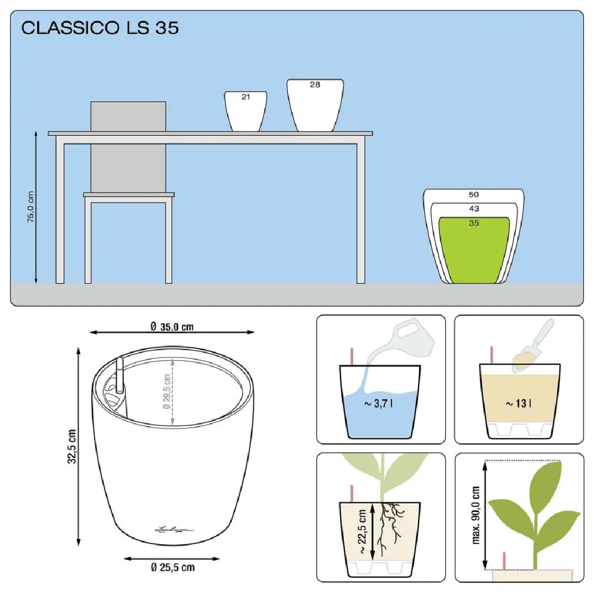La jardinière Classico 35 LS ALL-IN-ONE de la marque LECHUZA est une jardinière au design élégant et haut qui sera un élément d'affichage parfait pour n'importe quelle plante !
