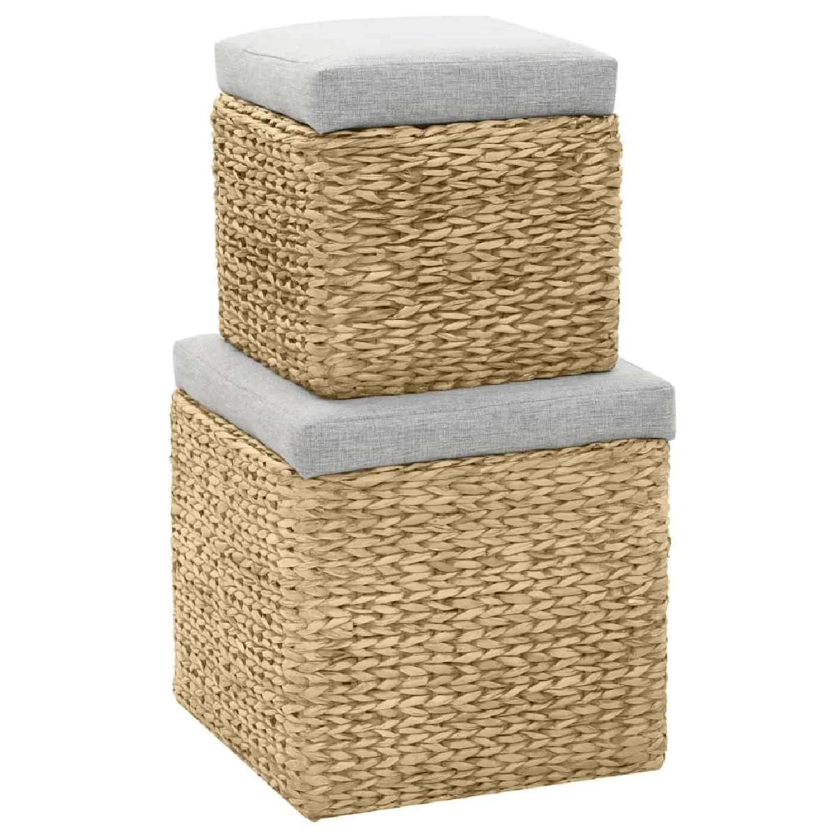 Fabriqué en jacinthe d'eau, les poufs apporteront un charme rustique et naturel à votre pièce. L'ensemble offre un grand espace de rangement pour garder divers objets à portée de main et bien organisés. Les coussins contribuent au confort d'assise de l'ensemble. L'ensemble a été assemblé. Aucun assemblage n'est requis.