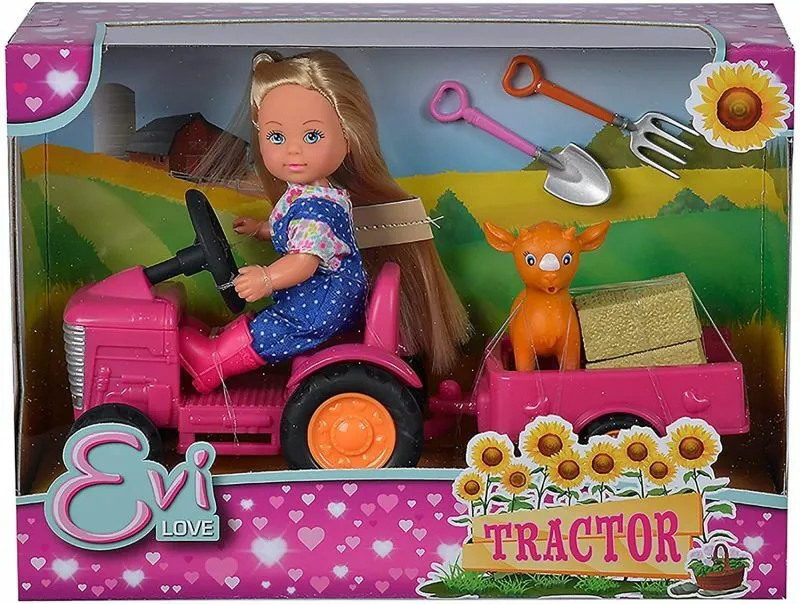 Poupée fermière avec tracteur – Série Evi Love – Non interactive – Matière plastique – Dès 3 ans
