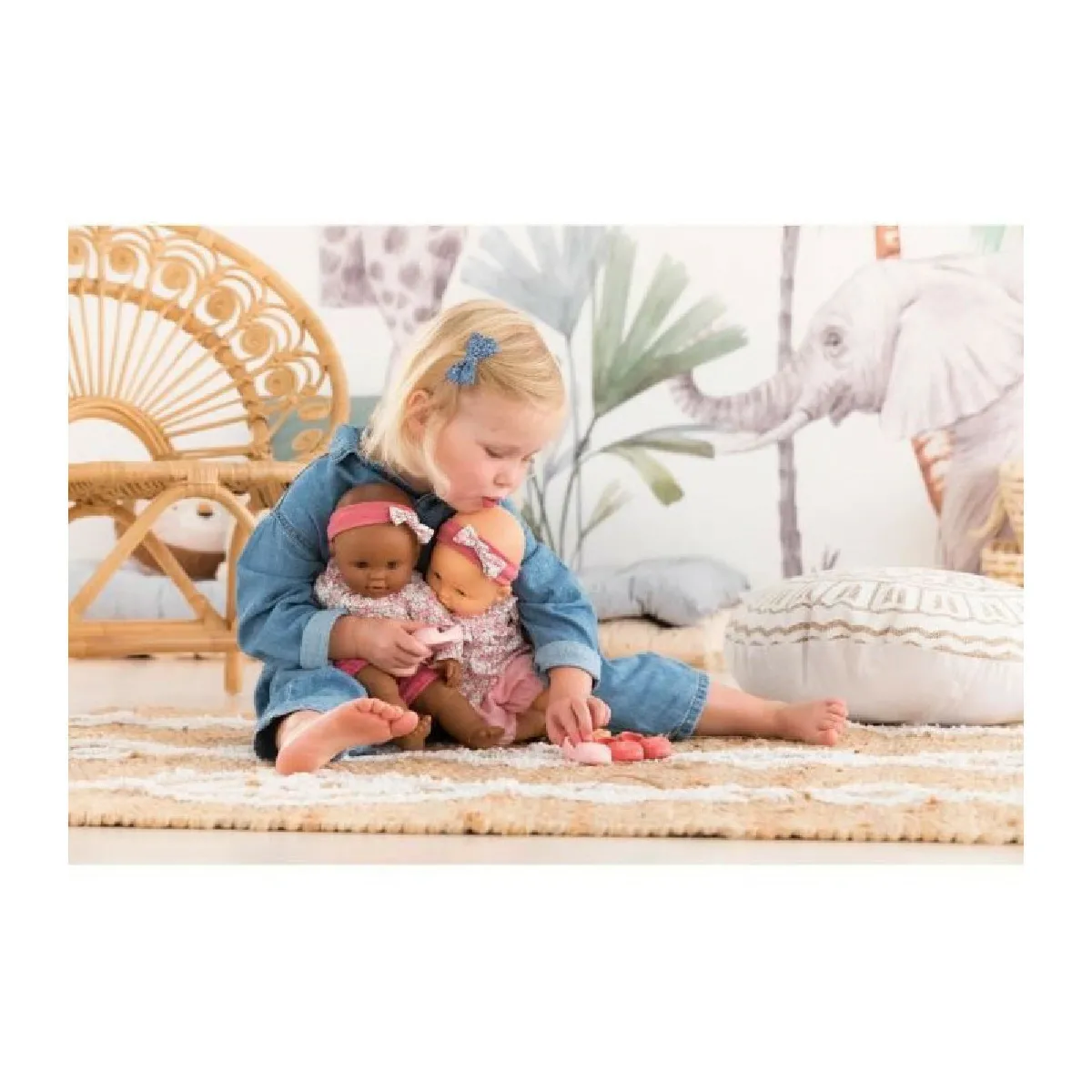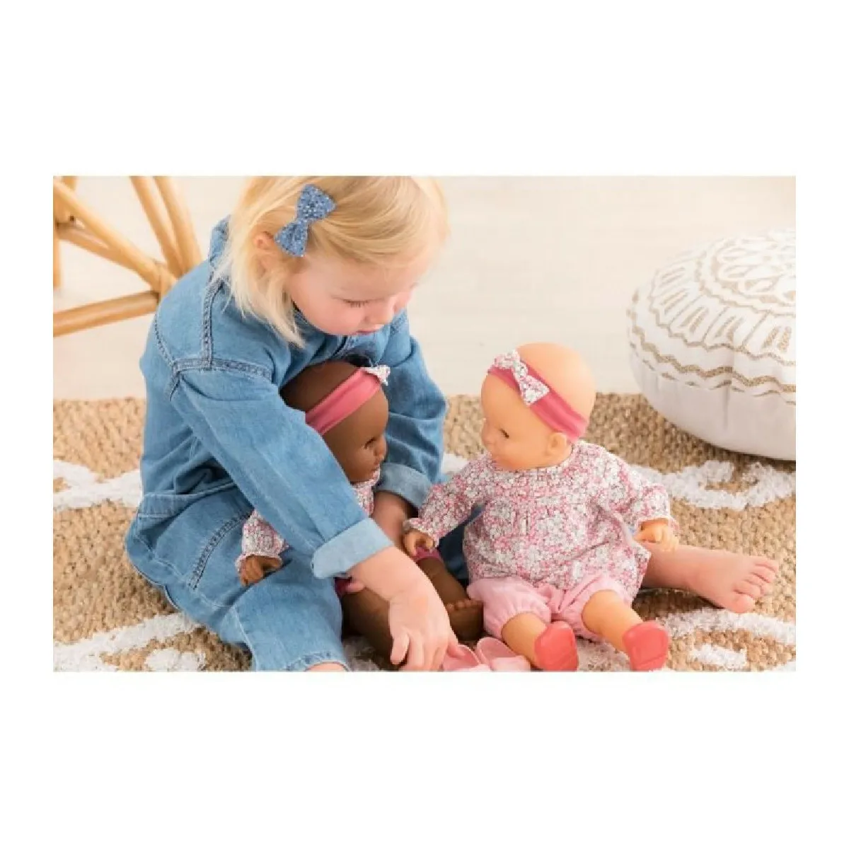 Le format de 36 cm facilite la prise en main et encourage les jeux d'imitation dès 2 ans. Son corps souple qui tient assis permet de l'installer facilement dans une poussette ou une chaise de poupée, pour des moments calmes de soin et d'habillage. Les yeux dormeurs qui se ferment ajoutent une touche réaliste au rituel du coucher et aident l'enfant à structurer les moments de la journée. La senteur de vanille délicate contribue à créer un univers réconfortant, propice au jeu autonome comme au jeu partagé.