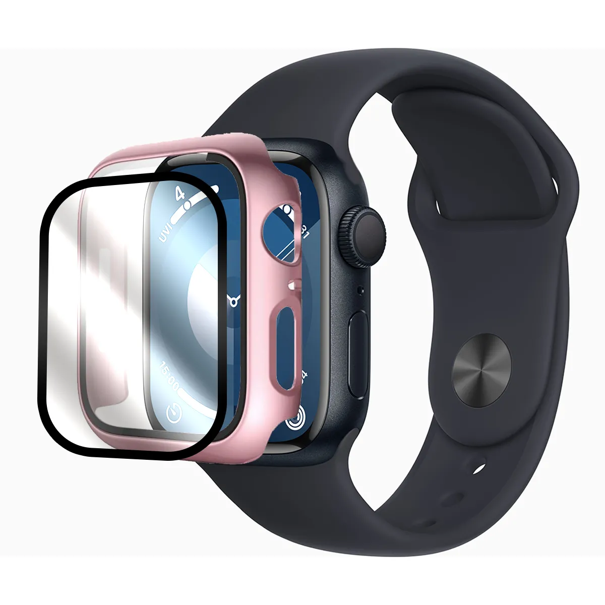 Verre trempé avec bords Noir + coque de protection souple silicone Rose pour Apple Watch Series 9 45mm - Coque souple silicone très facile à installer,Protège votre appareil des égratignures,chocs et coups sans empêcher l'accessibilité aux différentes fonctionnalités de la montre.Film Vitre de protection d'écran en verre trempé Anti- Rayure/Explosion Facilement à poser,Sans bulles Ultra-Fin/Transparent 9H, 0.26mm, 2.5D
