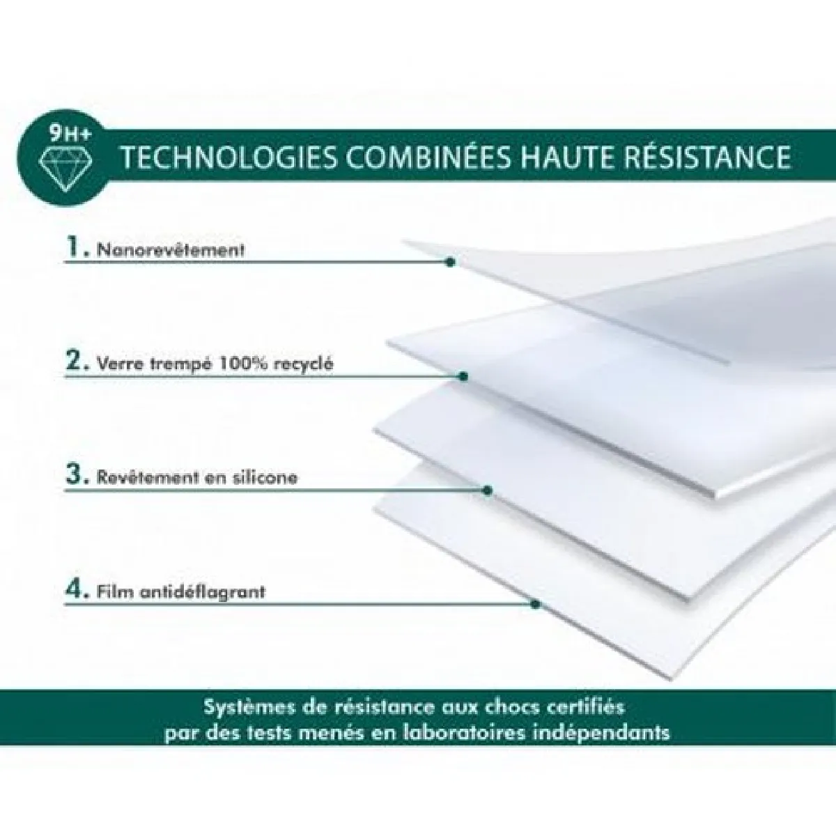 Technologie 9H+ ultra-résistante : probablement le protège-écran le plus résistant après le diamant.