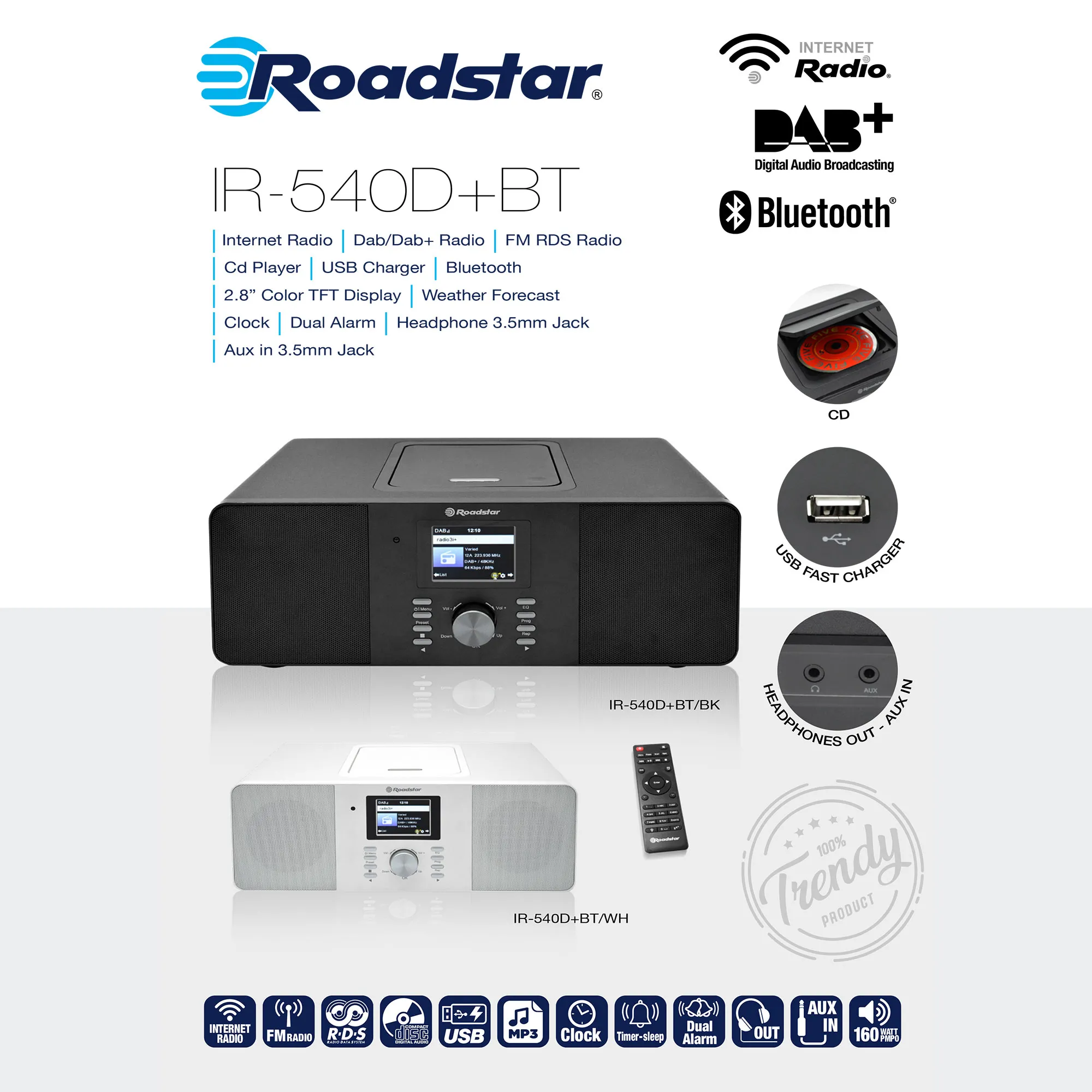 Roadstar IR-540D+BTBK - Noir |